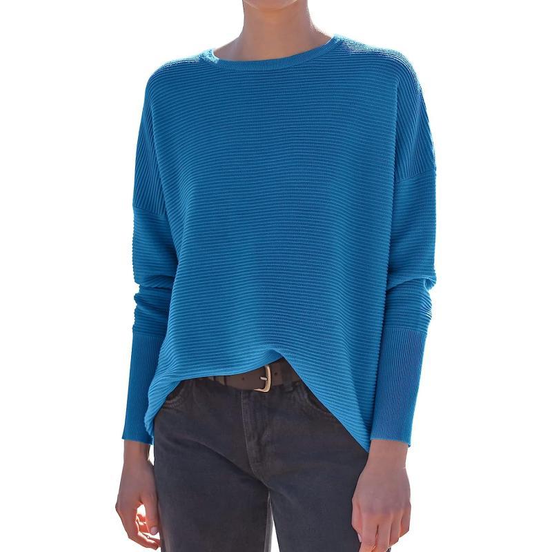 ANRABESS Women’s Long Batwing Sleeve Crewneck Casual Loose Ribbed Knit Fall Sweater Pullover with Split(Royal Blue)