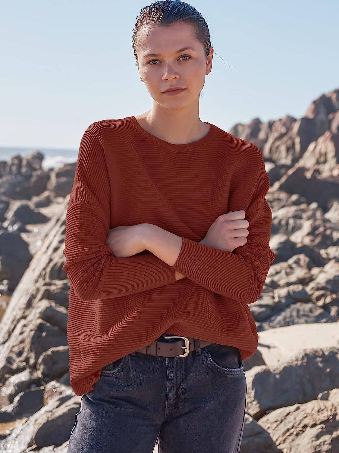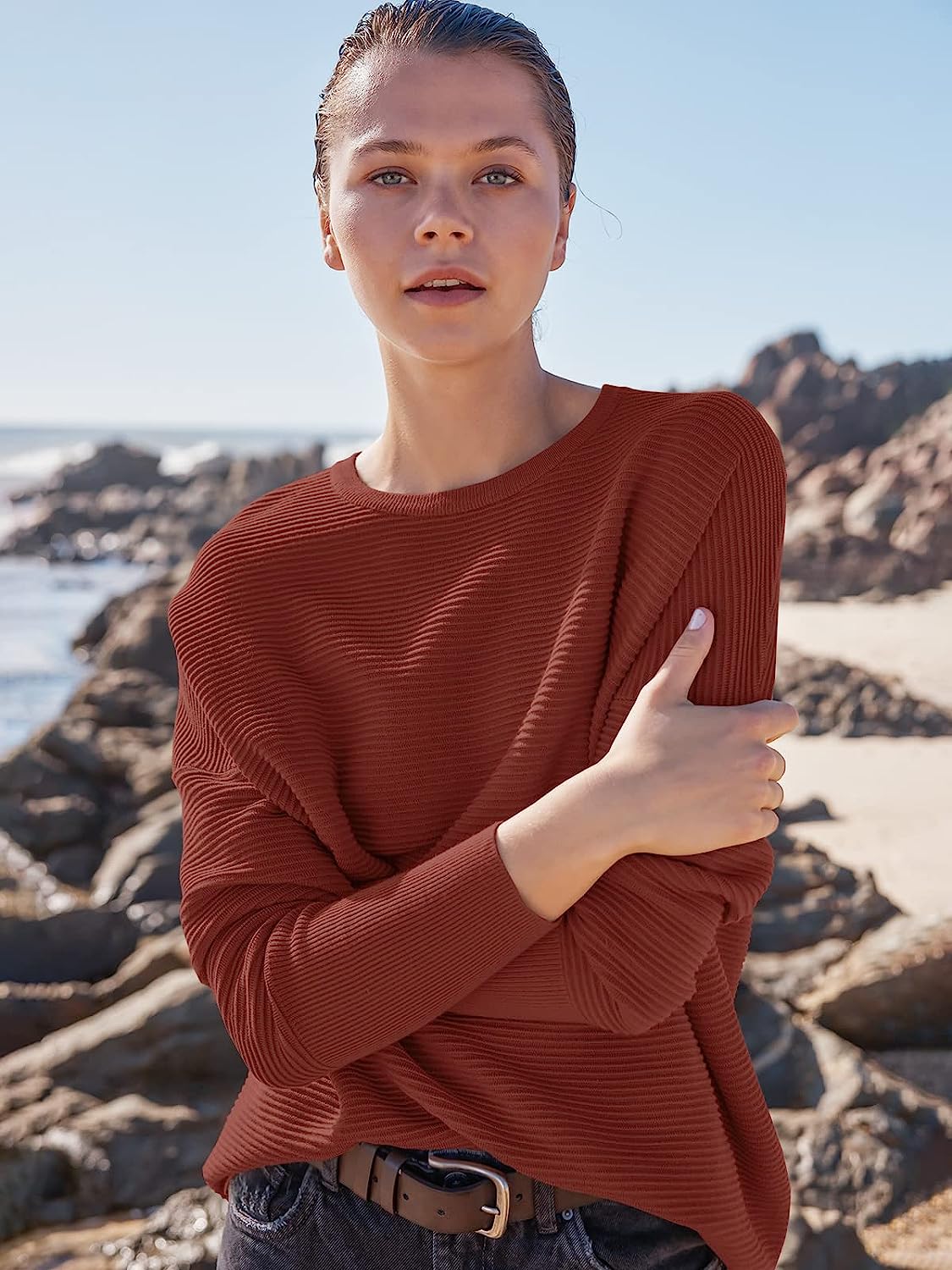Features – long batwing sleeve with slim cuff,ribbed knit fabric,crewneck,slit sides,oversized style.