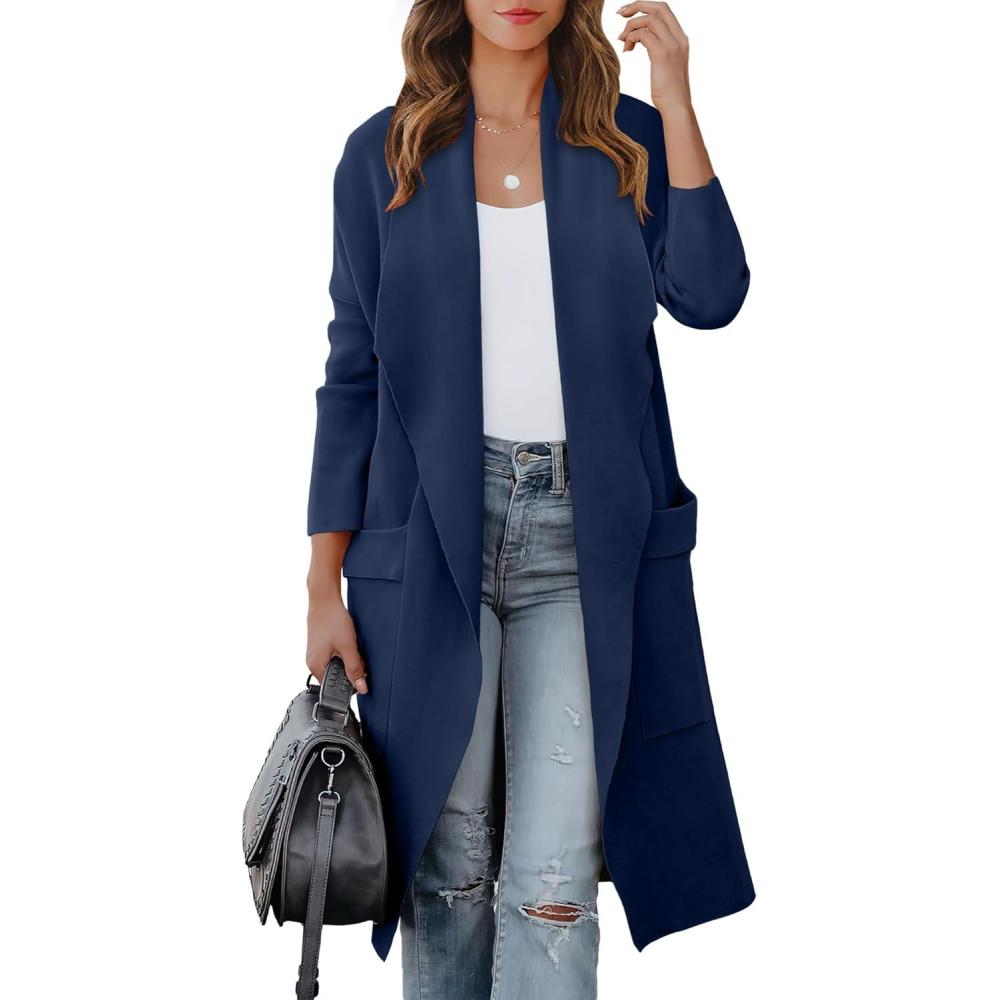 ANRABESS Women’s Long Cardigan Sweater 2025 Fall Fashion Casual Oversized Knit Open Front Coatigan Jacket Coat Outfits(Navy Blue)