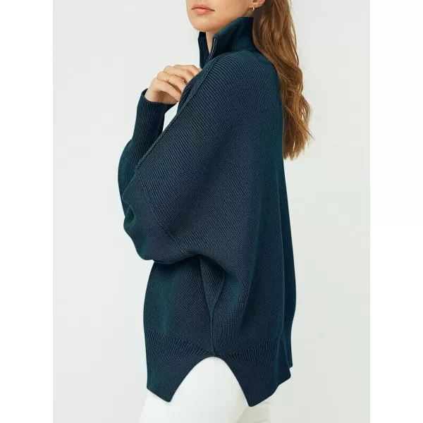 imageANRABESS Womens Long Sleeve 14 Zipper Collar Drop Shoulder Oversized Slouchy Sweatshirt Pullover Sweater with SlitDeep Blue
