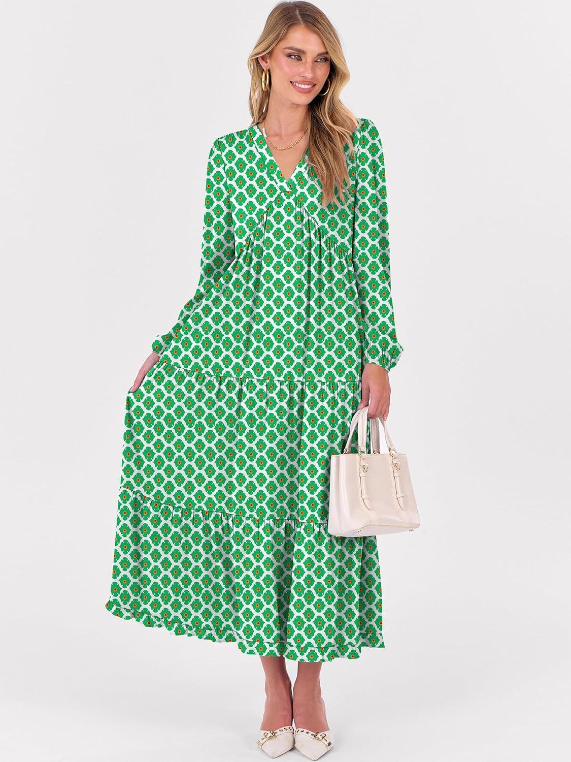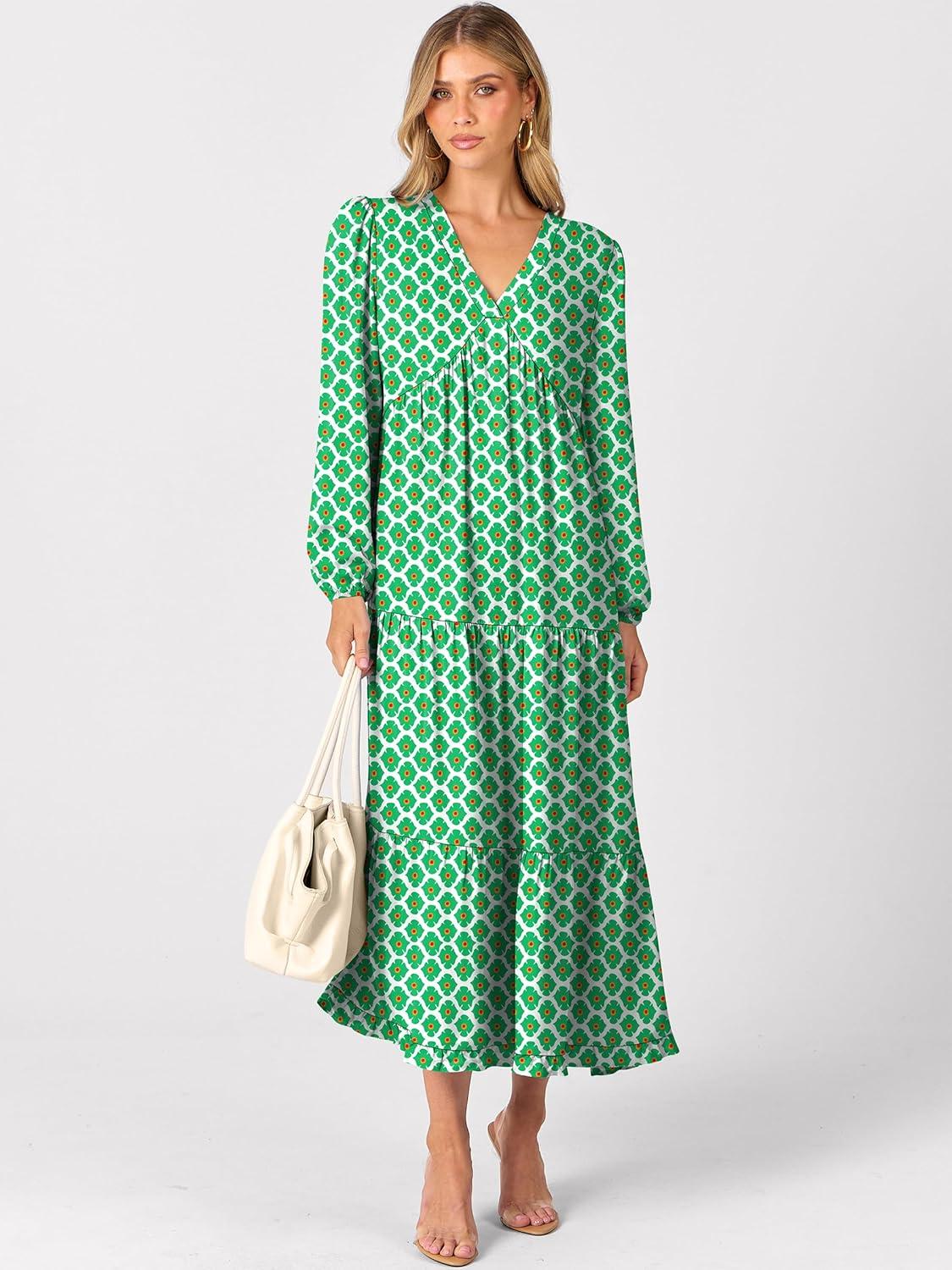Get the ANRABESS Womens Long Sleeve Boho Maxi Dress 2025 Fall V Neck Floral Striped Casual Loose Fit Beach Vacation Dresses(Light Green) you want at a price you can afford with our markdown sale.