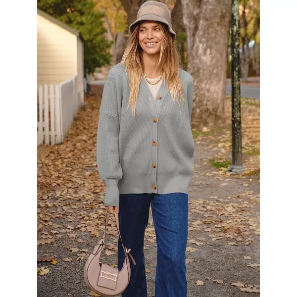 ANRABESS Women’s Long Sleeve Button Down V Neck Casual Loose Oversized Cardigan Knit Sweater Coat(Gray)