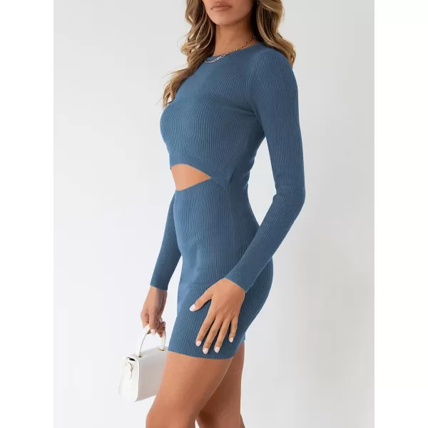 imageANRABESS Womens Long Sleeve Crewneck Cutout Sweater Dress Ribbed Knit Slim Fit Bodycon Mini DressDeep Blue