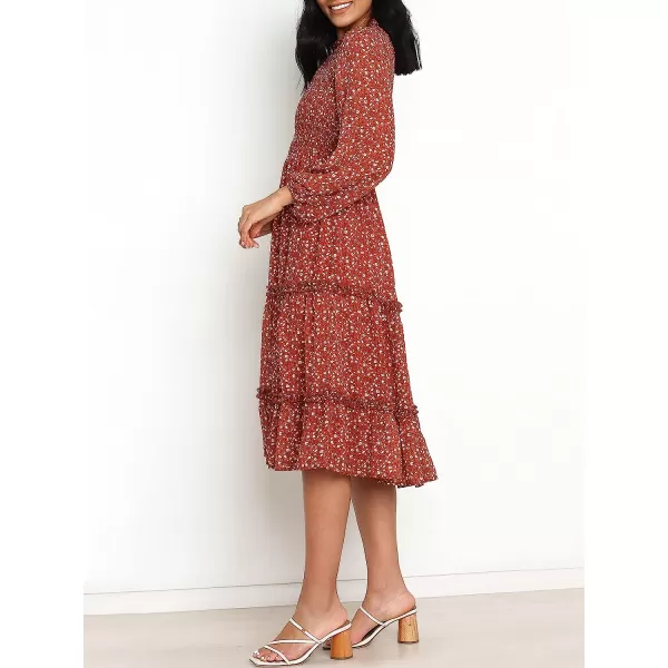 imageANRABESS Womens Long Sleeve Crewneck Smocked Boho Dress ALine Ruffle Frill Tiered Swing Midi DressFloral 02