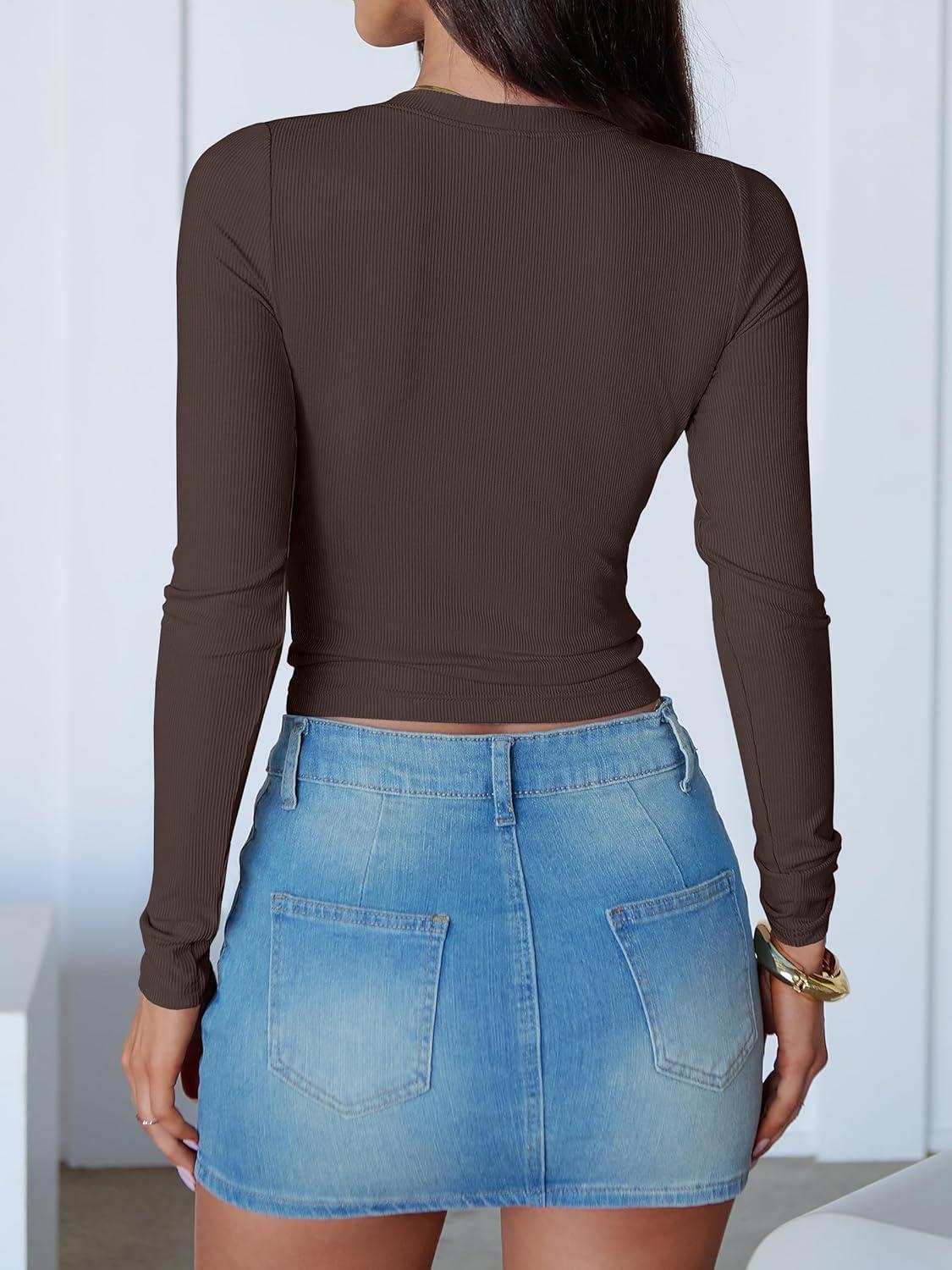 ANRABESS Womens Long Sleeve Crop Tops Ribbed Knit Slim Fitted Shirts Basic Tees 2025 Fall Outfits Y2K Teen Girls Clothes(Coffee)