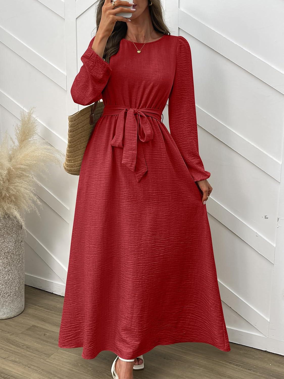 Our holiday sale features the best deals on ANRABESS Womens Long Sleeve Dress 2025 Fall Casual Empire Waist A-Line Flowy Maxi Dresses with Pockets Vacation Outfits(Birck Red) and accessories. Shop now and save!