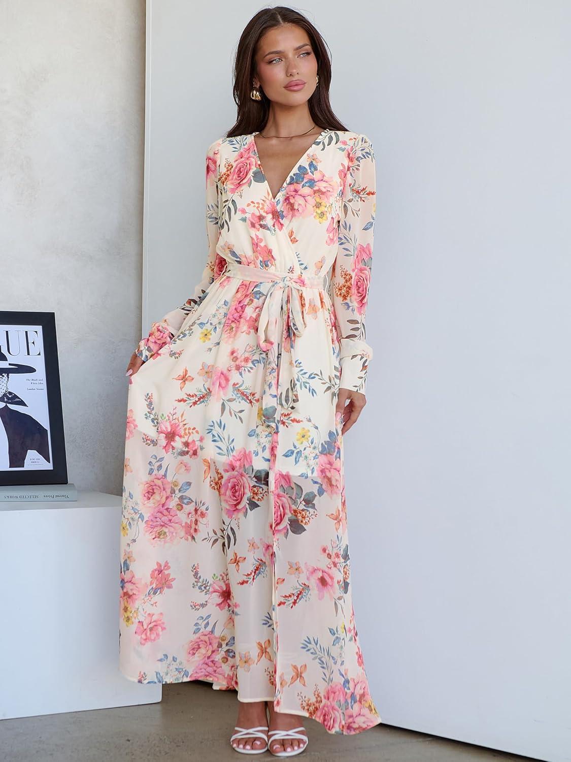 Save up to 40% on ANRABESS Women’s Long Sleeve Floral Maxi Dress Boho Flowy Wrap Slit V Neck Beach Fall Wedding Guest Party Vacation Dresses(Floral Pink) styles during our end-of-season sale.
