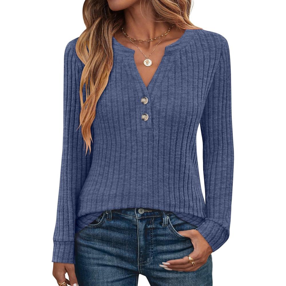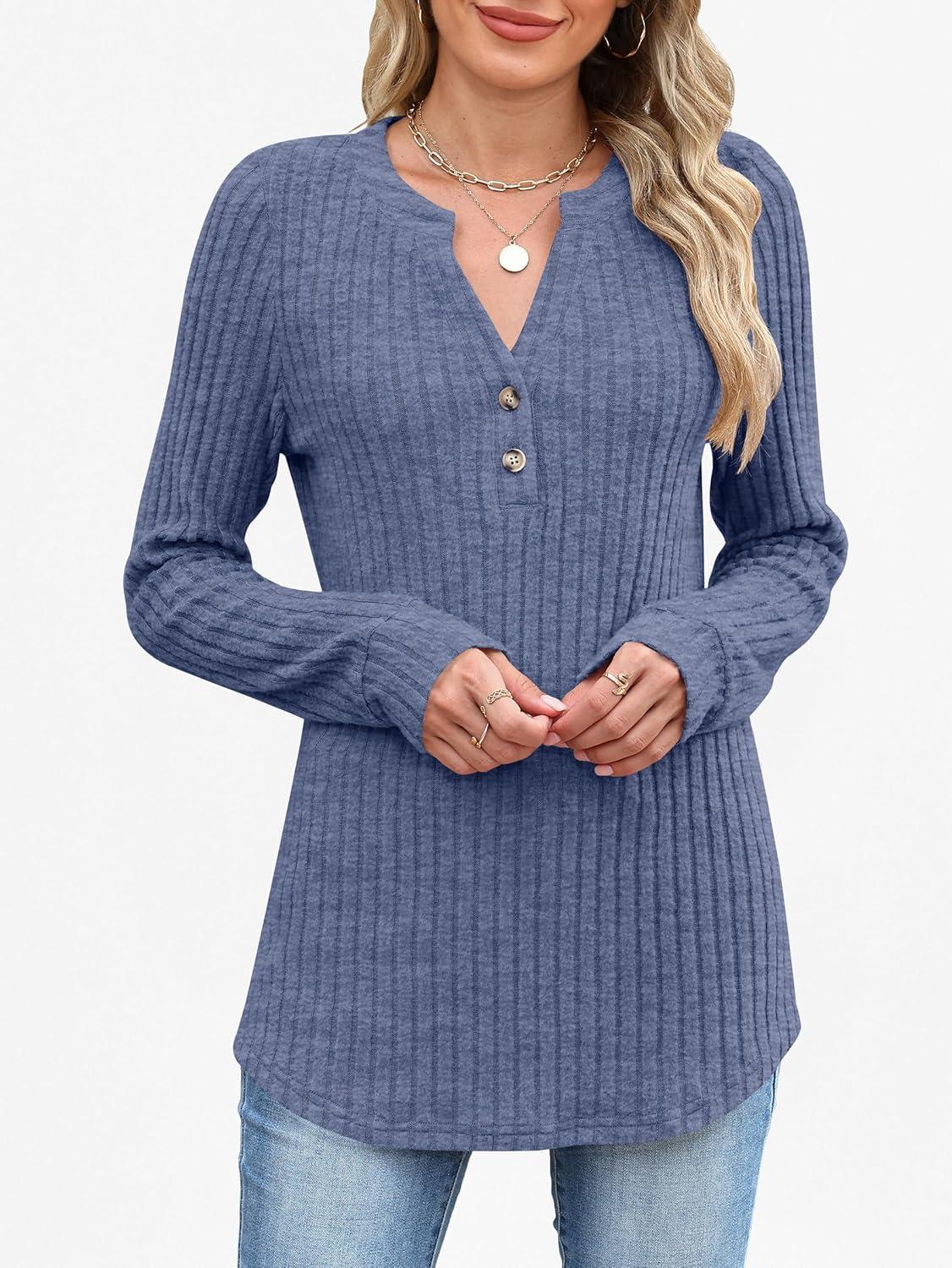 ANRABESS Womens Long Sleeve Henley Shirts 2025 Fall Tunic Tops Ribbed Knit Lightweight Sweaters Dressy Casual Blouse Outfits(Dark Blue)