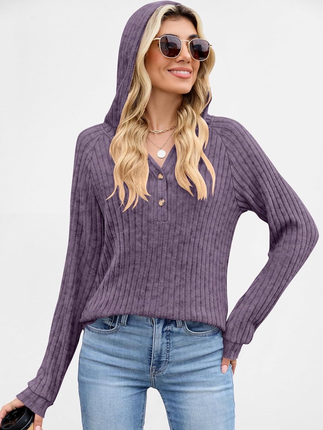 Get the ANRABESS Womens Long Sleeve Henley Tops Ribbed Knit Hoodie Shirts 2025 Fall Loose Fit Lightweight Hooded Sweaters(Purple) you’ve been eyeing at a discounted price during our seasonal sale event.
