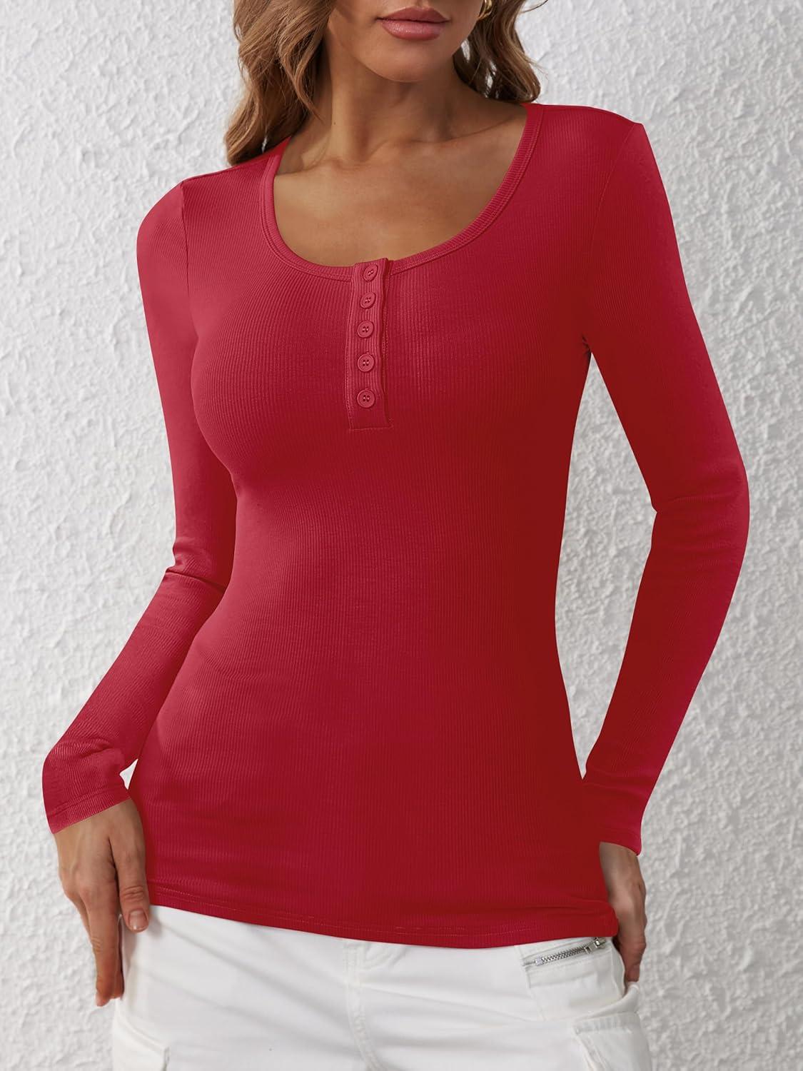 imageANRABESS Womens Long Sleeve Henley Tops Ribbed Knit Slim Fitted Trendy T Shirt Basic Tees Layer 2025 Fall Fashion OutfitsBright Red