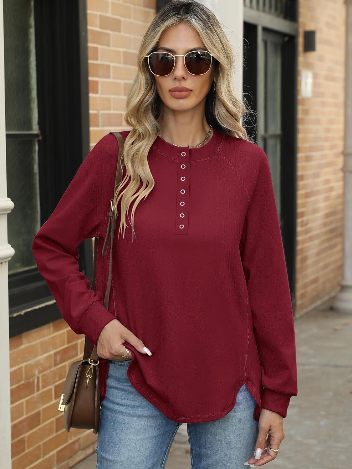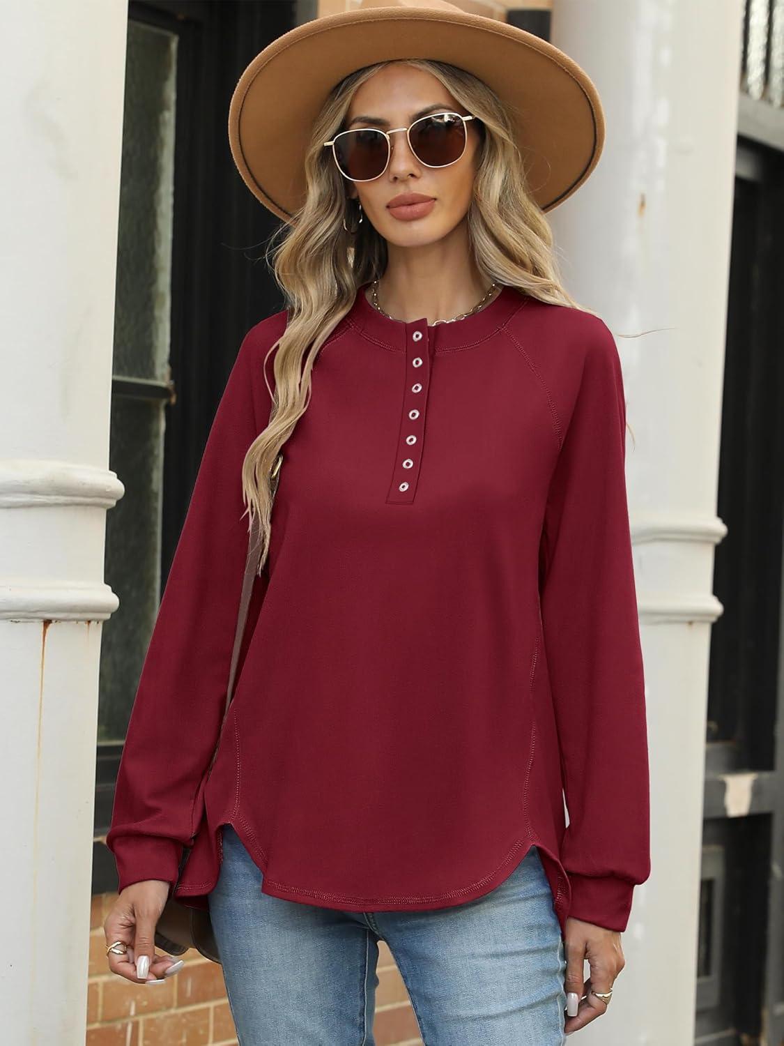 imageANRABESS Womens Long Sleeve Henley Tops Tunic Sweatshirt Loose Slit Casual Button Shirts Pullover 2025 Fall Winter OutfitsRed