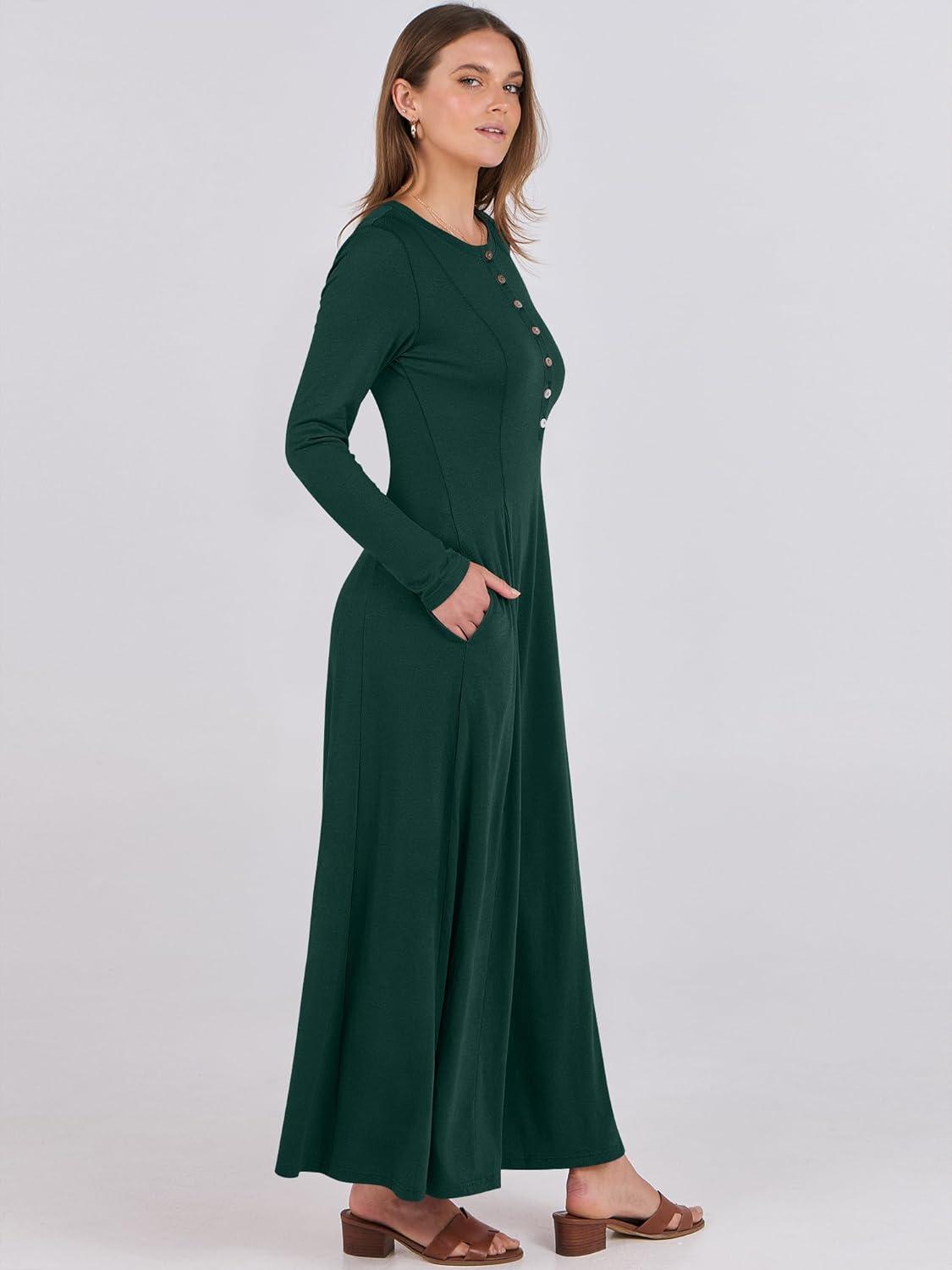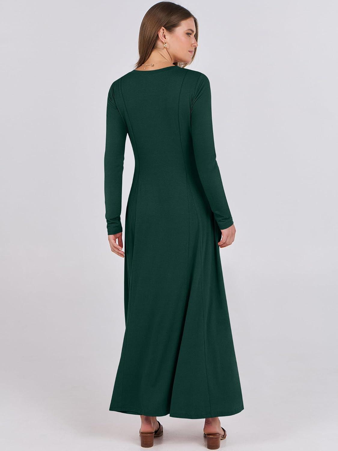 ANRABESS Women's Long Sleeve Maxi Dress 2025 Fall Casual Button Fit & Flare A-Line Swing Flowy Long Dresses Winter Trendy(Deep Green)