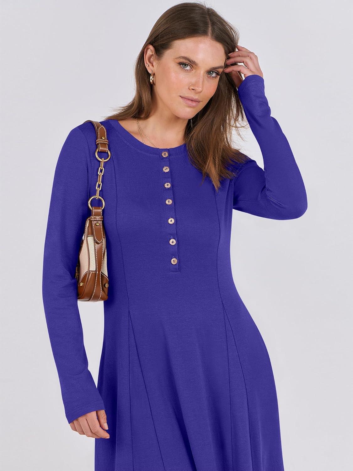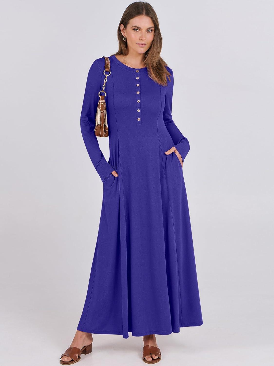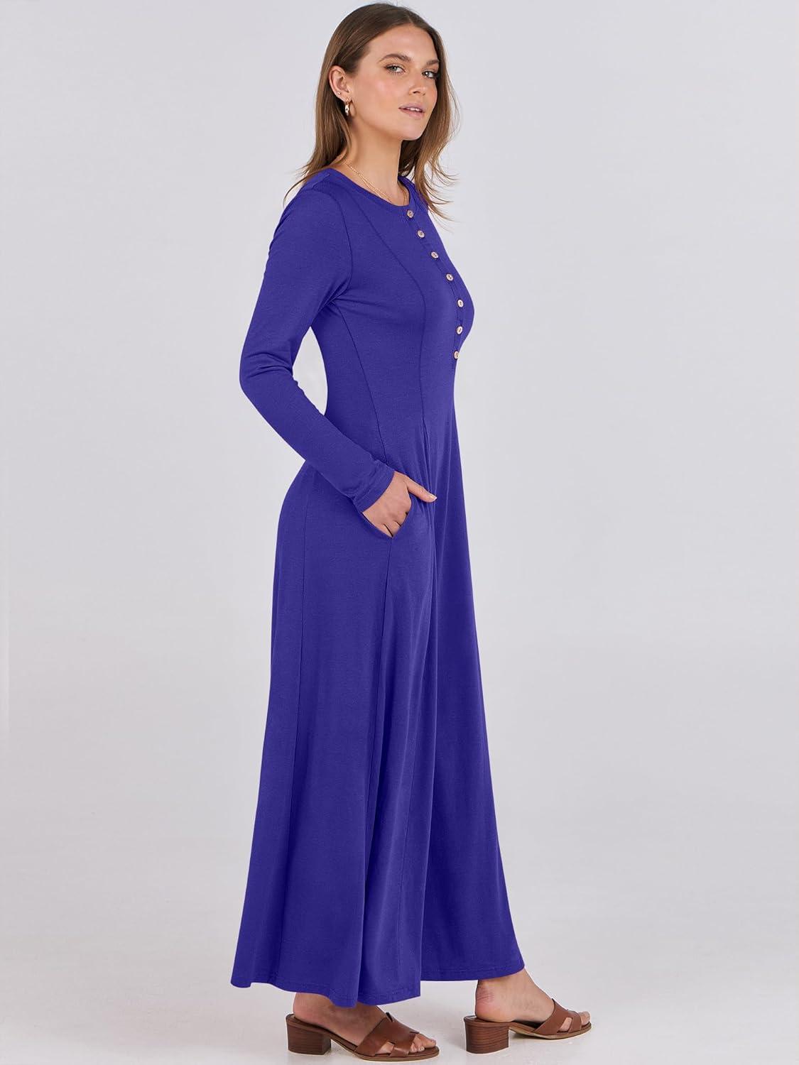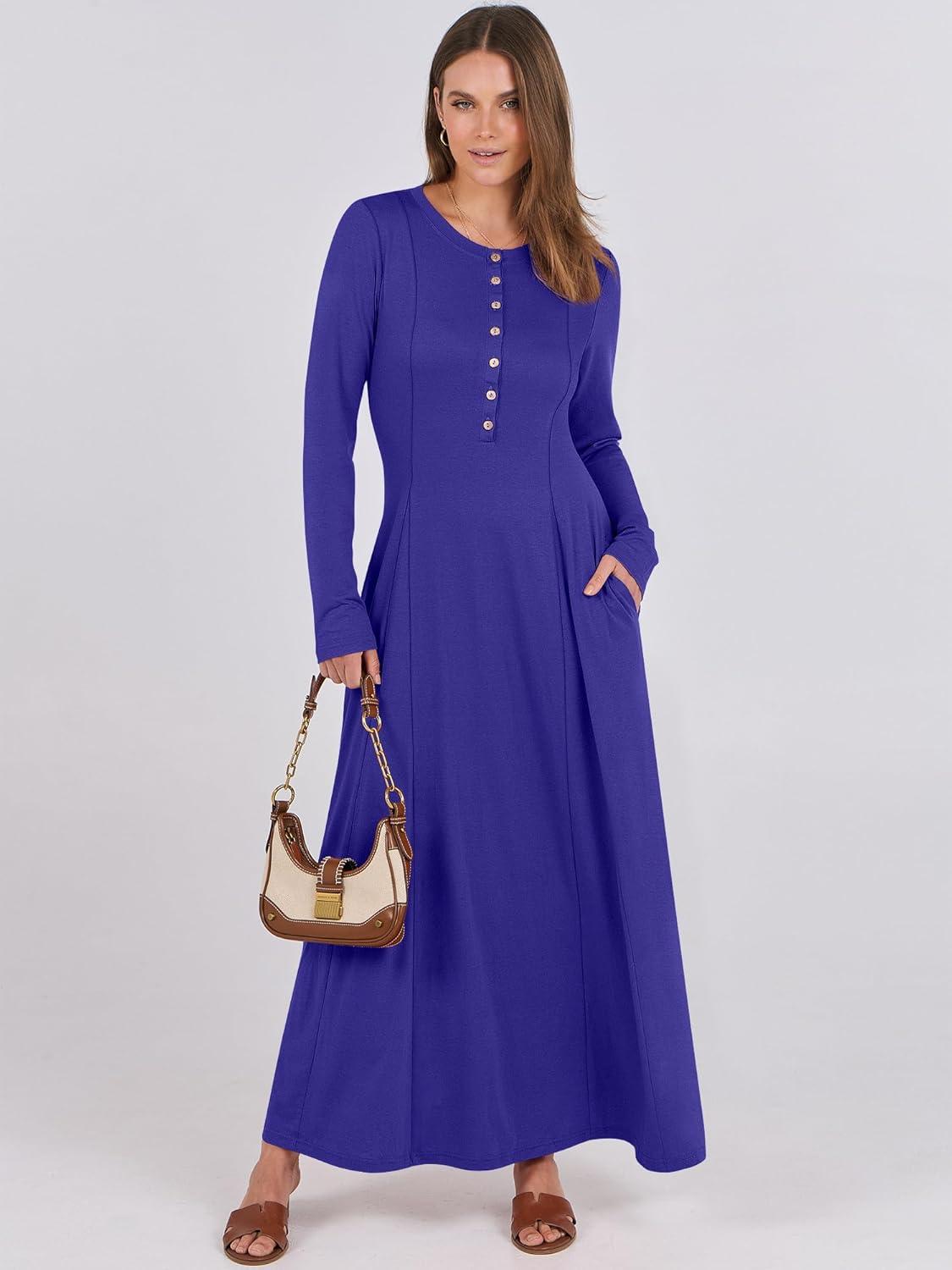 ANRABESS Women’s Long Sleeve Maxi Dress 2025 Fall Casual Button Fit & Flare A-Line Swing Flowy Long Dresses Winter Trendy(Royal Blue)