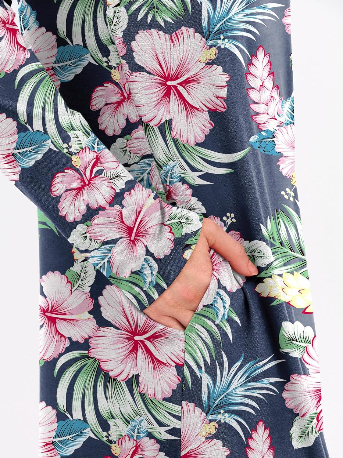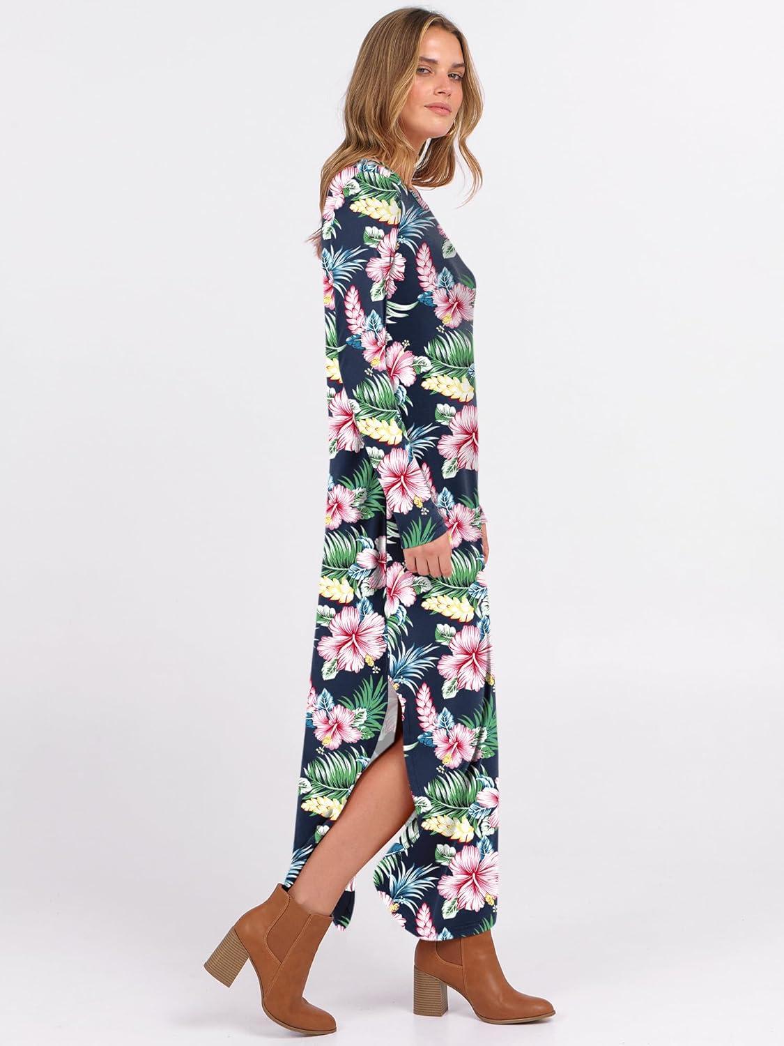 ANRABESS Women’s Long Sleeve Maxi Dresses 2025 Fall Outfits Casual Loose Split Travel Vacation T Shirt Dress with Pockets(Floral Green White)