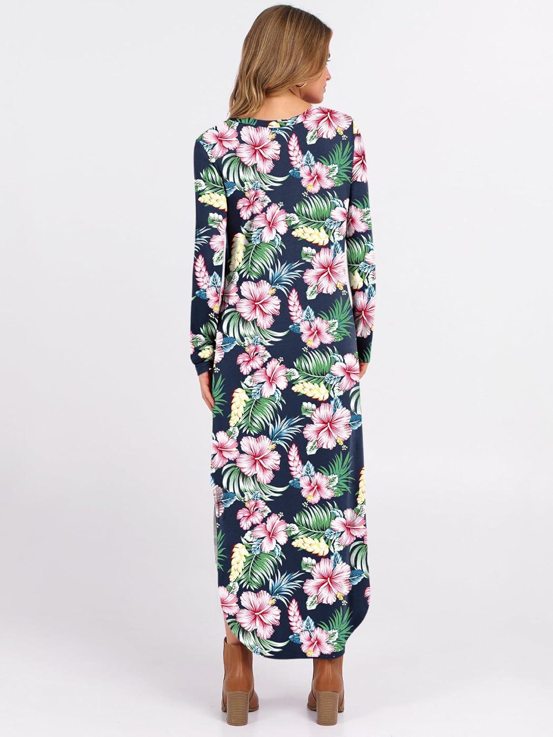 imageANRABESS Womens Long Sleeve Maxi Dresses 2025 Fall Outfits Casual Loose Split Travel Vacation T Shirt Dress with PocketsFloral Green Pink