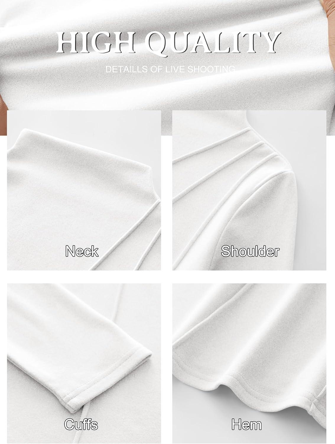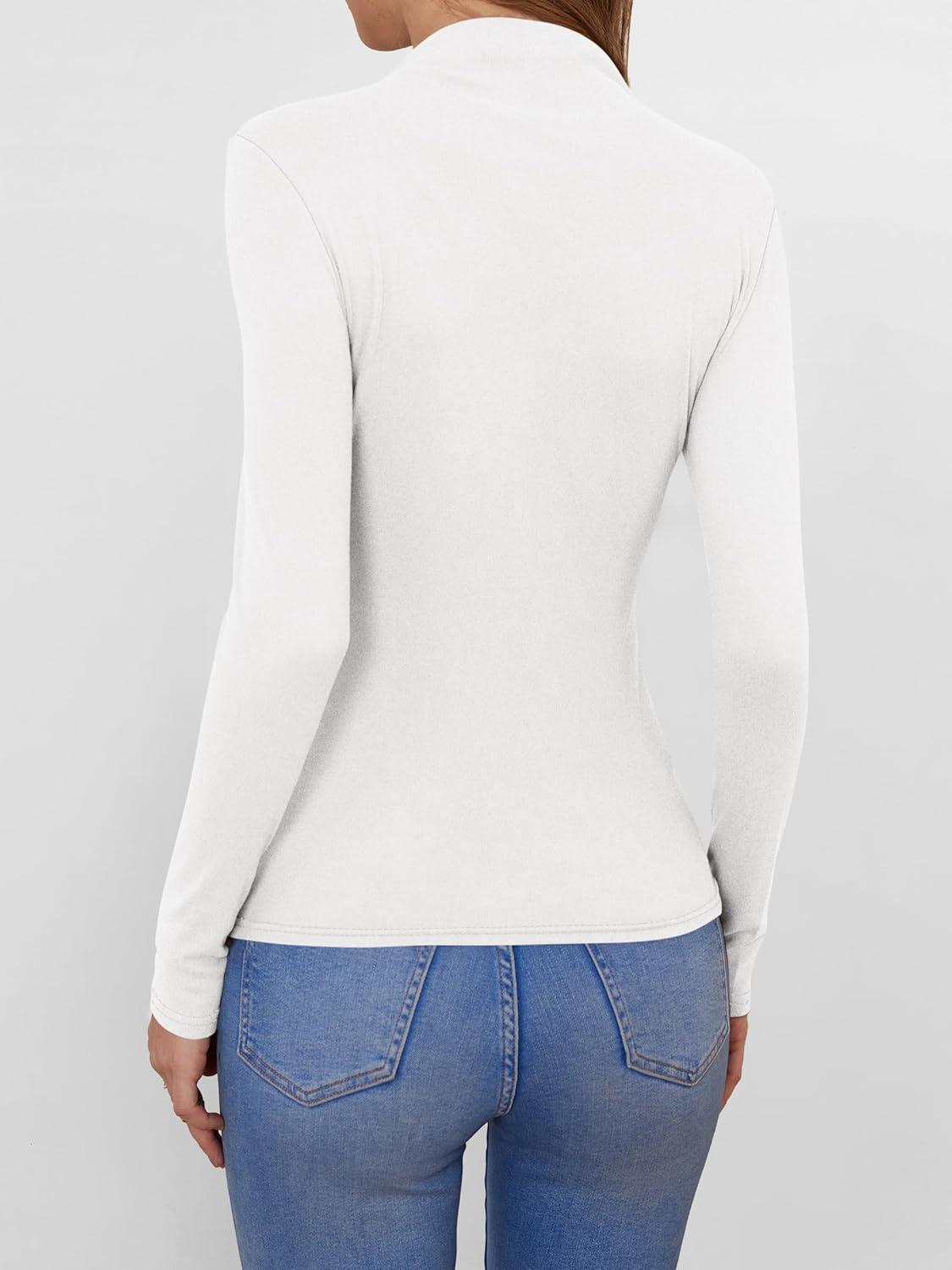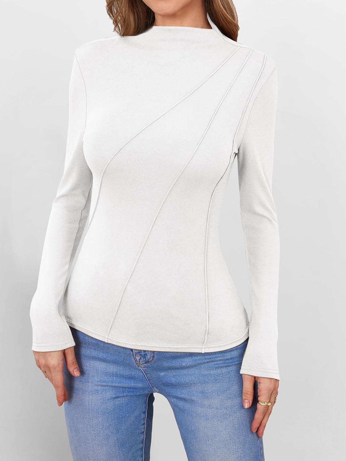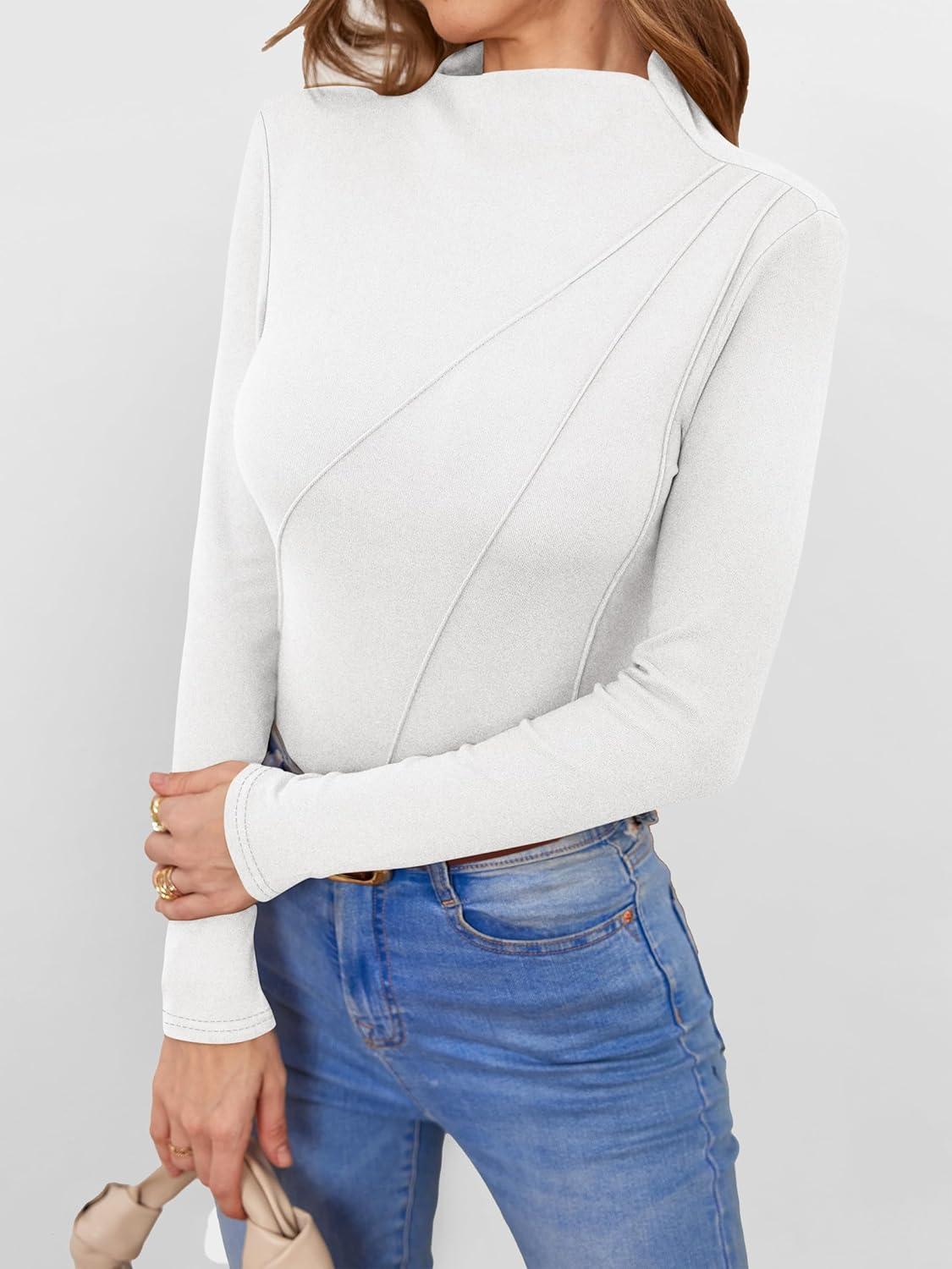ANRABESS Womens Long Sleeve Mock Neck Shirts Fitted Dressy Casual Blouse 2025 Fall Office Work Thermal Tops(White)