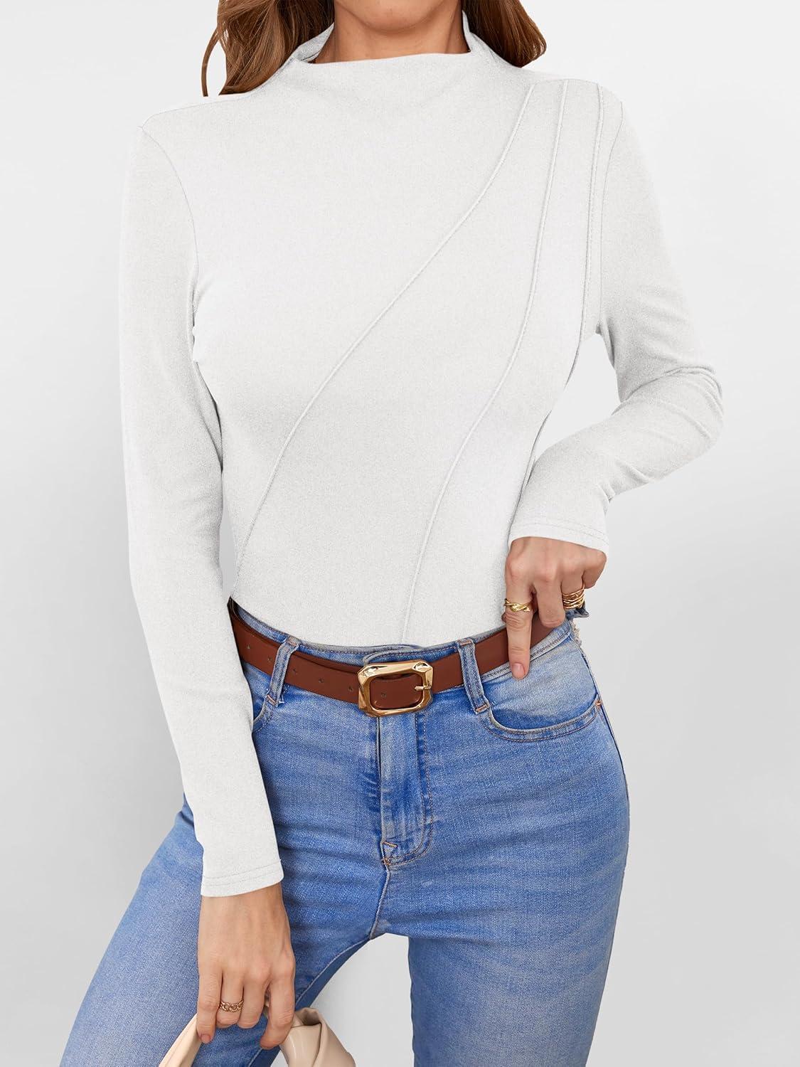 imageANRABESS Womens Long Sleeve Mock Neck Shirts Fitted Dressy Casual Blouse 2025 Fall Office Work Thermal TopsWhite