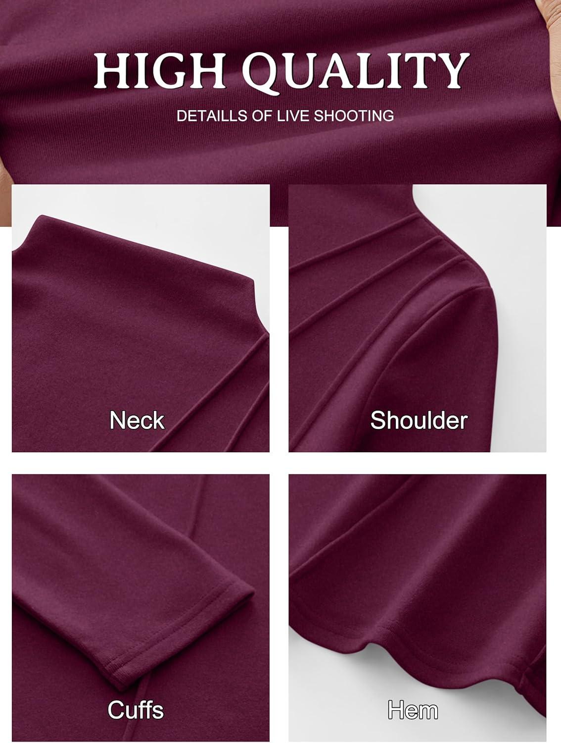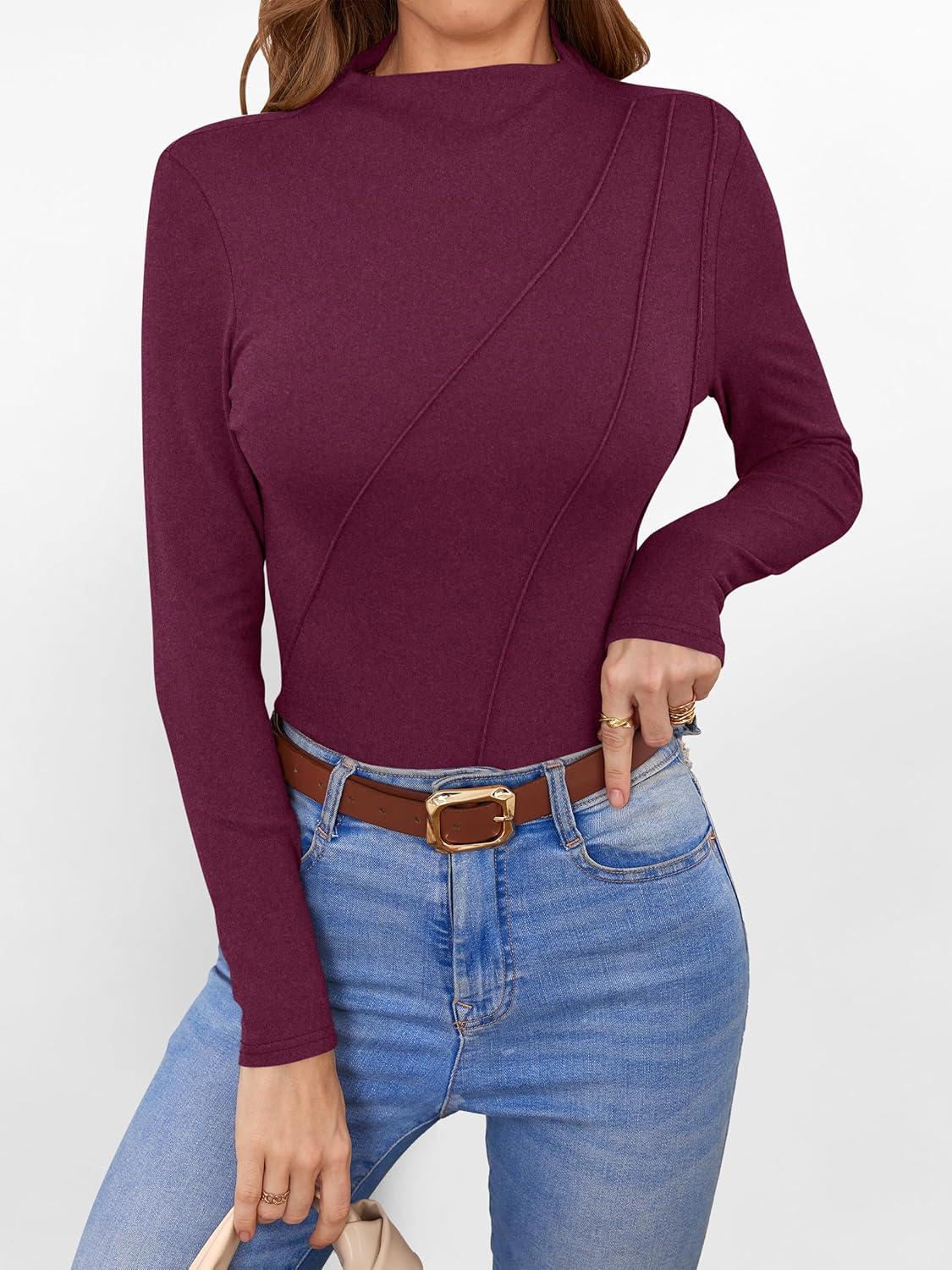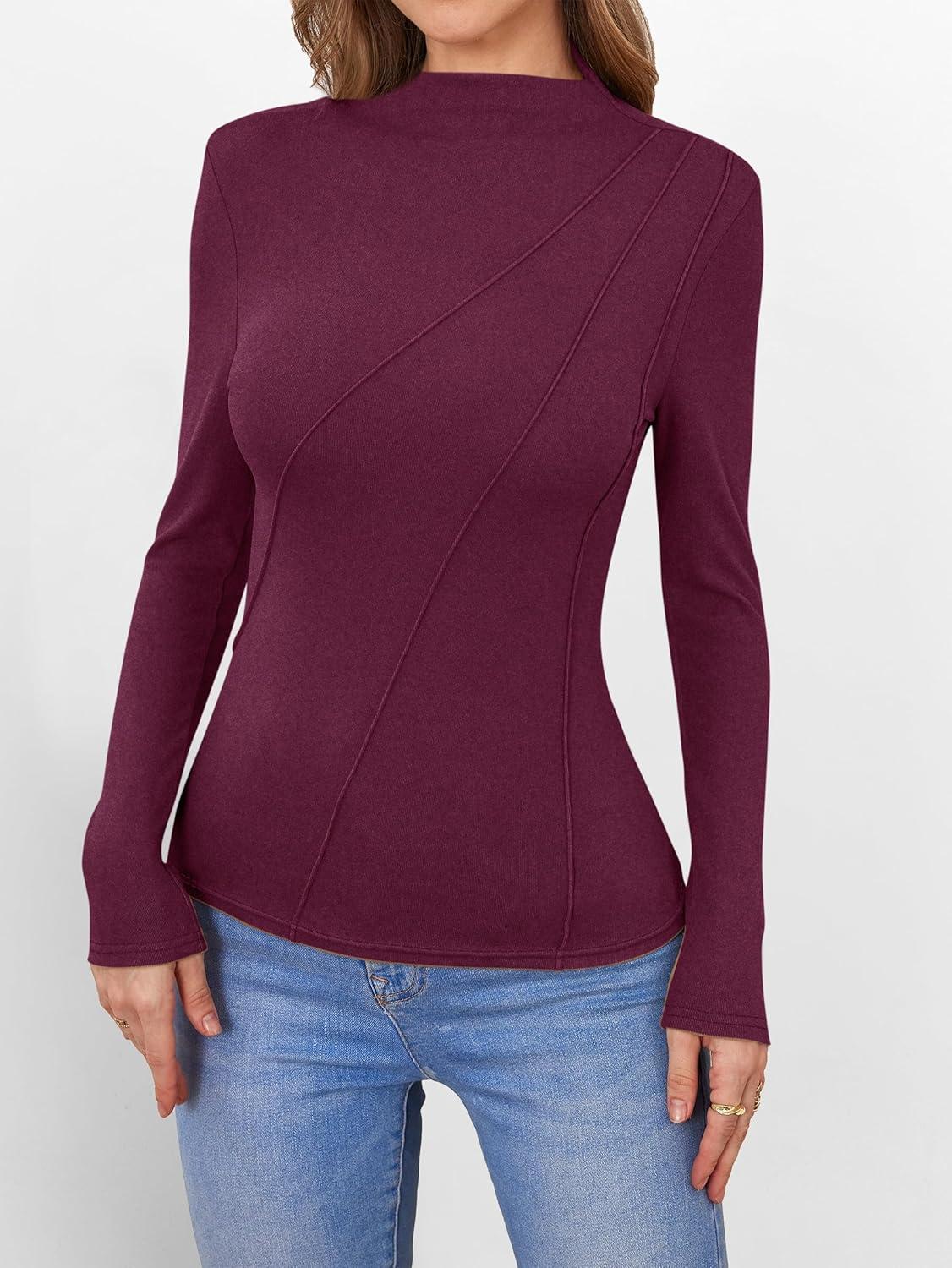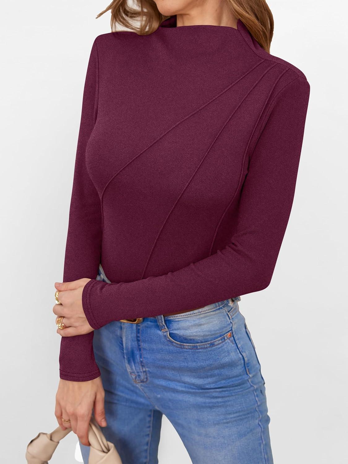 ANRABESS Womens Long Sleeve Mock Neck Shirts Fitted Dressy Casual Blouse 2025 Fall Office Work Thermal Tops(Wine Red)
