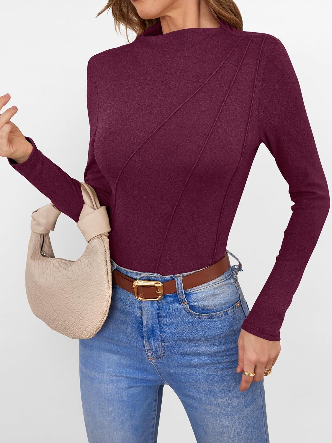 imageANRABESS Womens Long Sleeve Mock Neck Shirts Fitted Dressy Casual Blouse 2025 Fall Office Work Thermal TopsWine Red