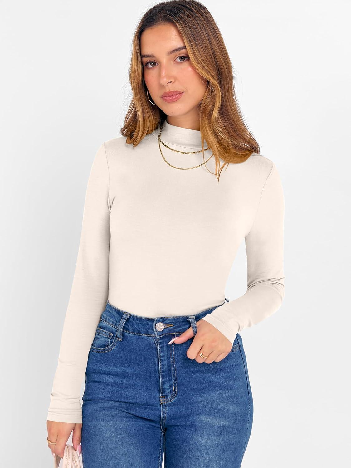 imageANRABESS Womens Long Sleeve Mock Neck Tops Slim Fitted Basic Layer Office Work Shirts 2025 Fall Outfits Y2K ClothesBeige