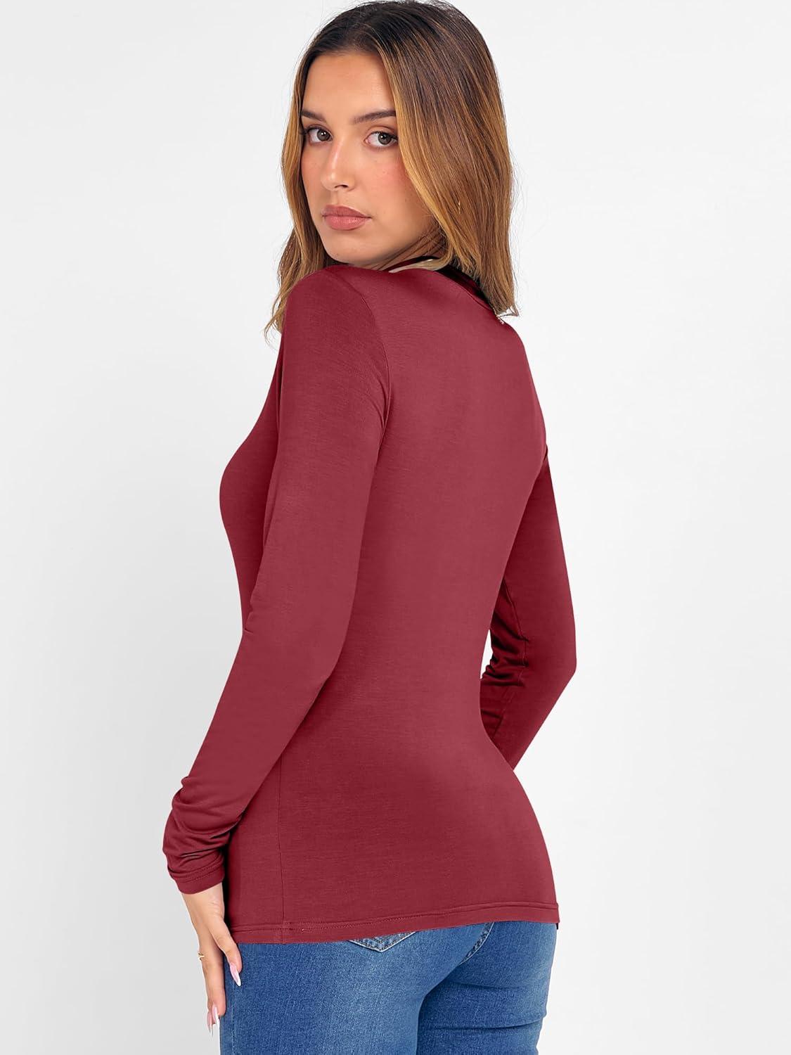 imageANRABESS Womens Long Sleeve Mock Neck Tops Slim Fitted Basic Layer Office Work Shirts 2025 Fall Outfits Y2K ClothesBurgundy