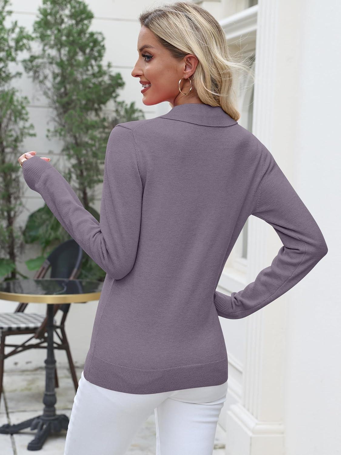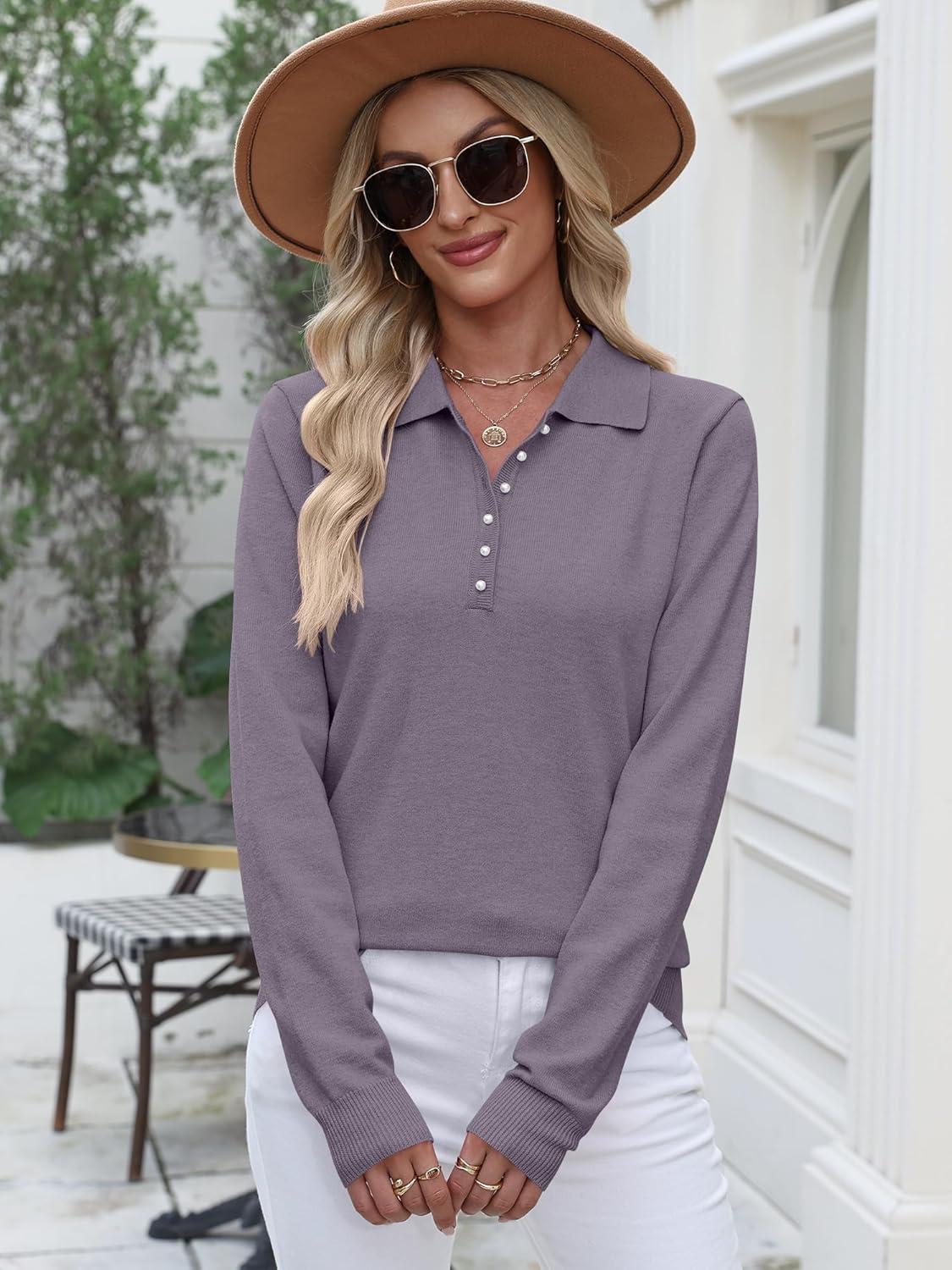 imageANRABESS Womens Long Sleeve Polo Sweaters Knit Button Shirt Lightweight Dressy Casual Basic Pullover Tops 2025 Fall FashionLight Blue