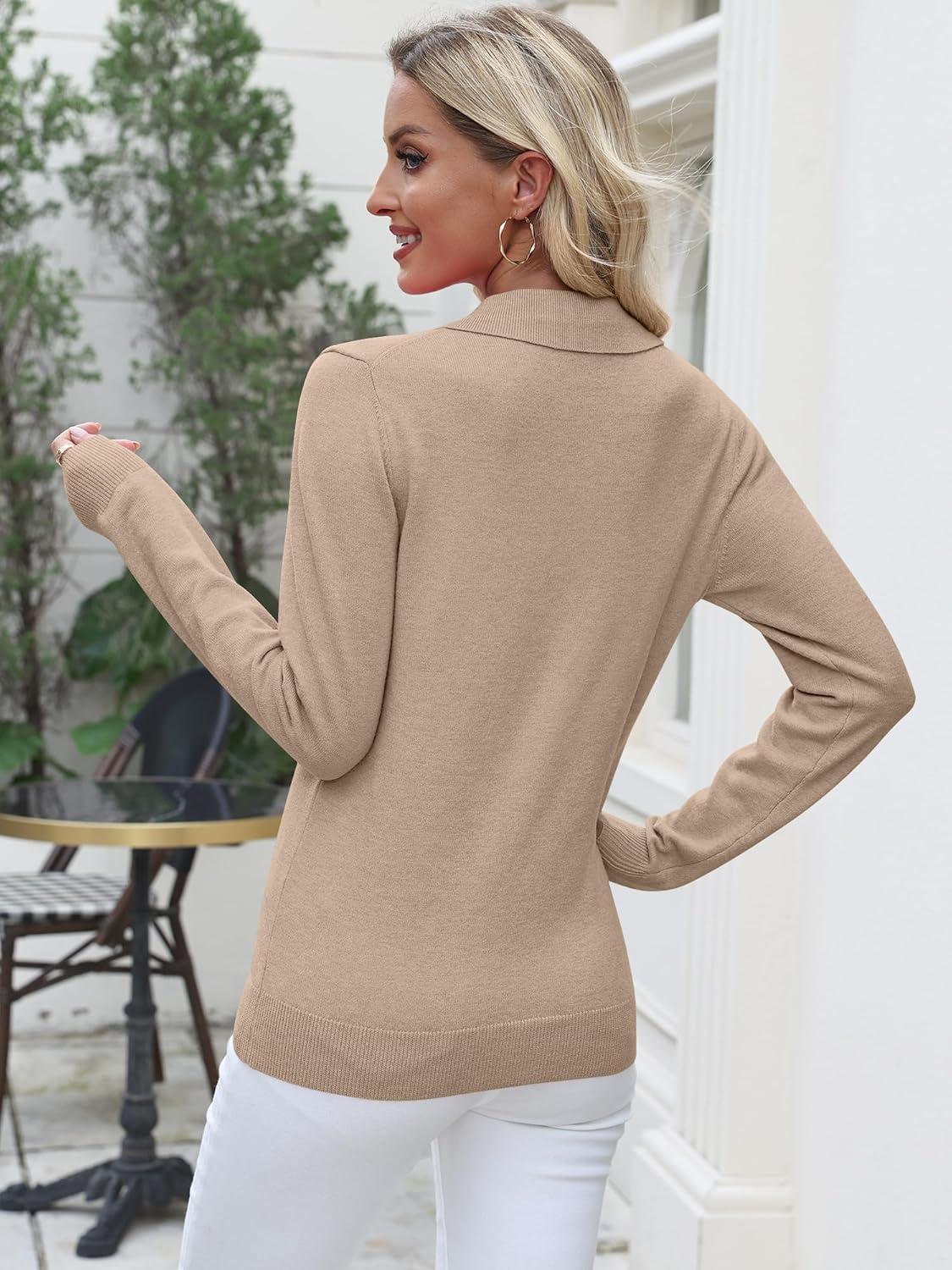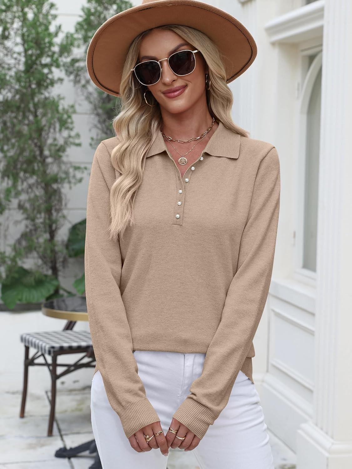 imageANRABESS Womens Long Sleeve Polo Sweaters Knit Button Shirt Lightweight Dressy Casual Basic Pullover Tops 2025 Fall FashionTan