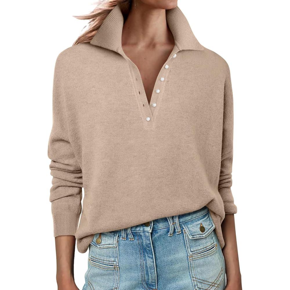 ANRABESS Womens Long Sleeve Polo Sweaters Knit Button Shirt Lightweight Dressy Casual Basic Pullover Tops 2025 Fall Fashion(Tan)
