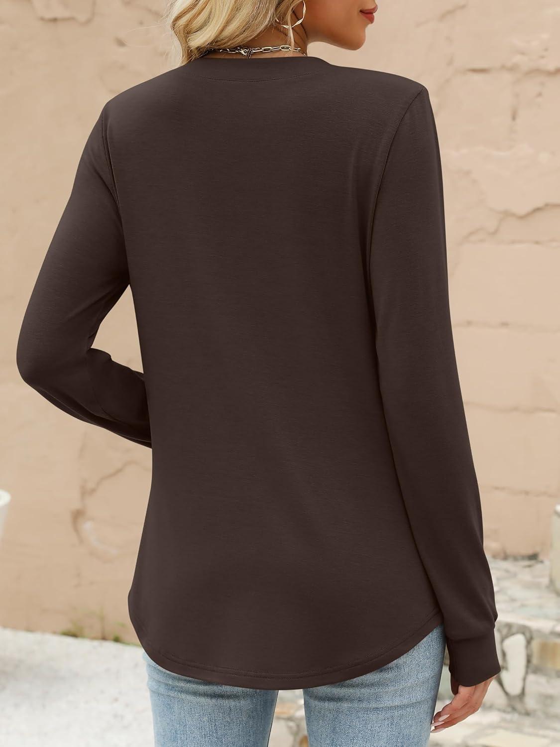 ANRABESS Women’s Long Sleeve Shirts 2025 Fall Henley Business Casual Tops Cute T-Shirts Work Blouses Outfits Vacation Clothes(Coffee)