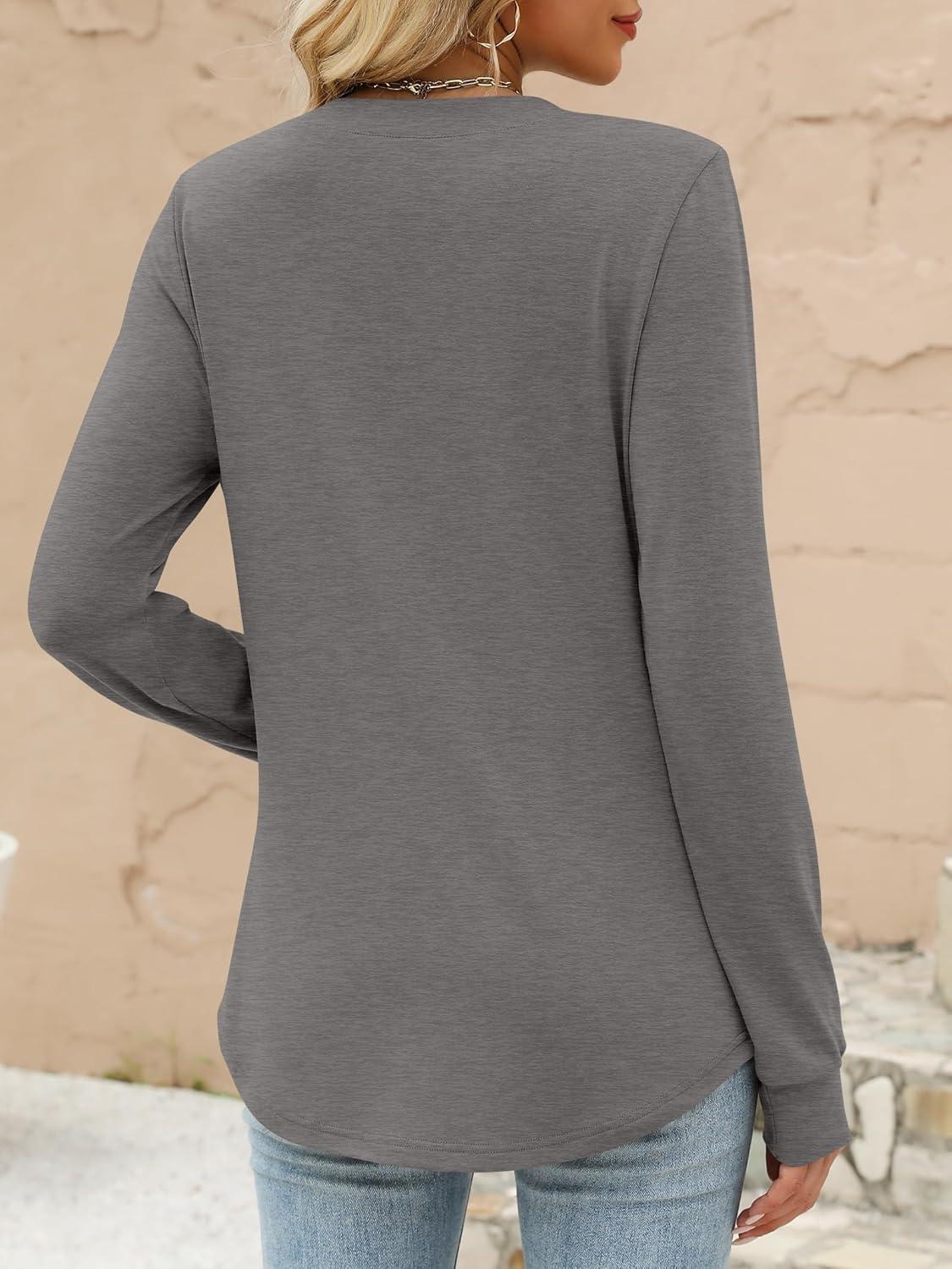 ANRABESS Women's Long Sleeve Shirts 2025 Fall Henley Business Casual Tops Cute T-Shirts Work Blouses Outfits Vacation Clothes(Light Taupe)