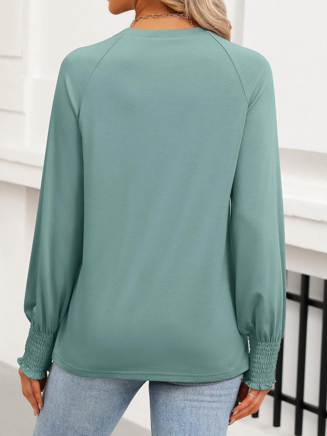 ANRABESS Women’s Long Sleeve Shirts Crewneck Casual Loose Tunic Tops Dressy Work Blouses Fall Fashion Clothes 2025(Cadet Blue)