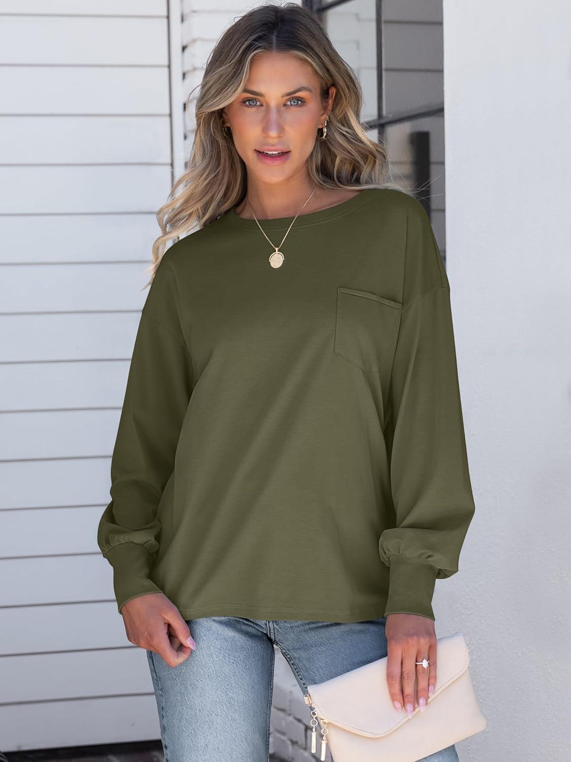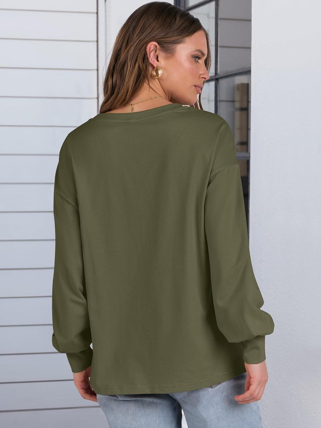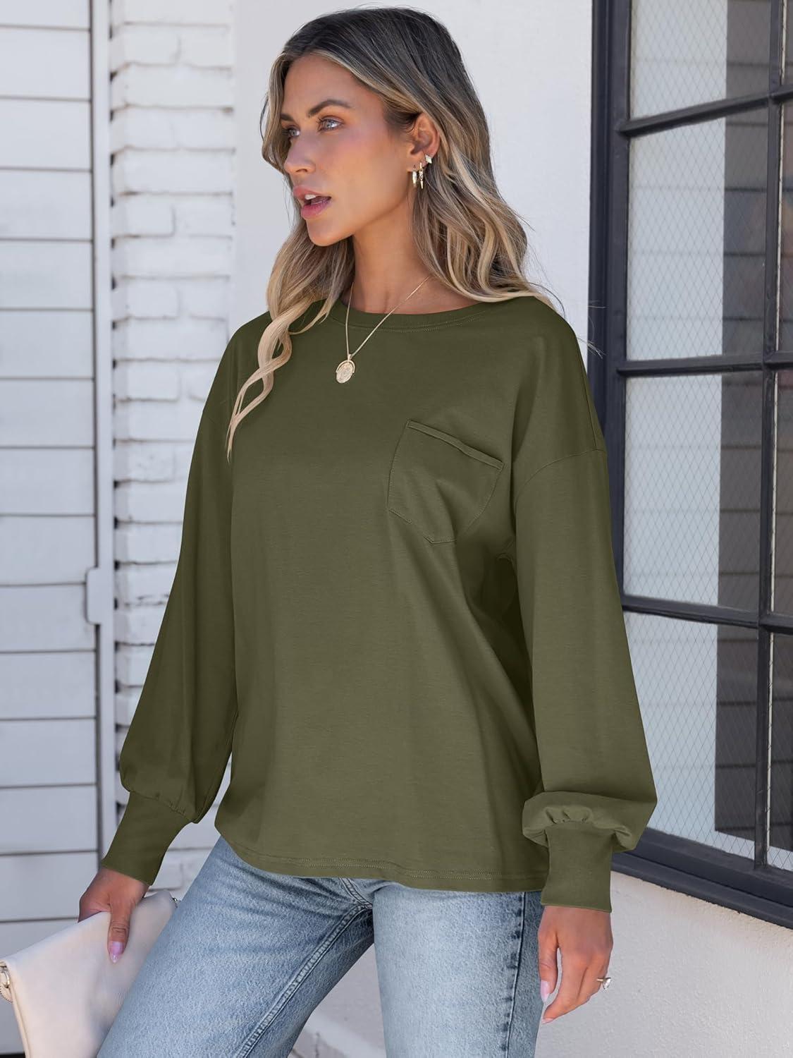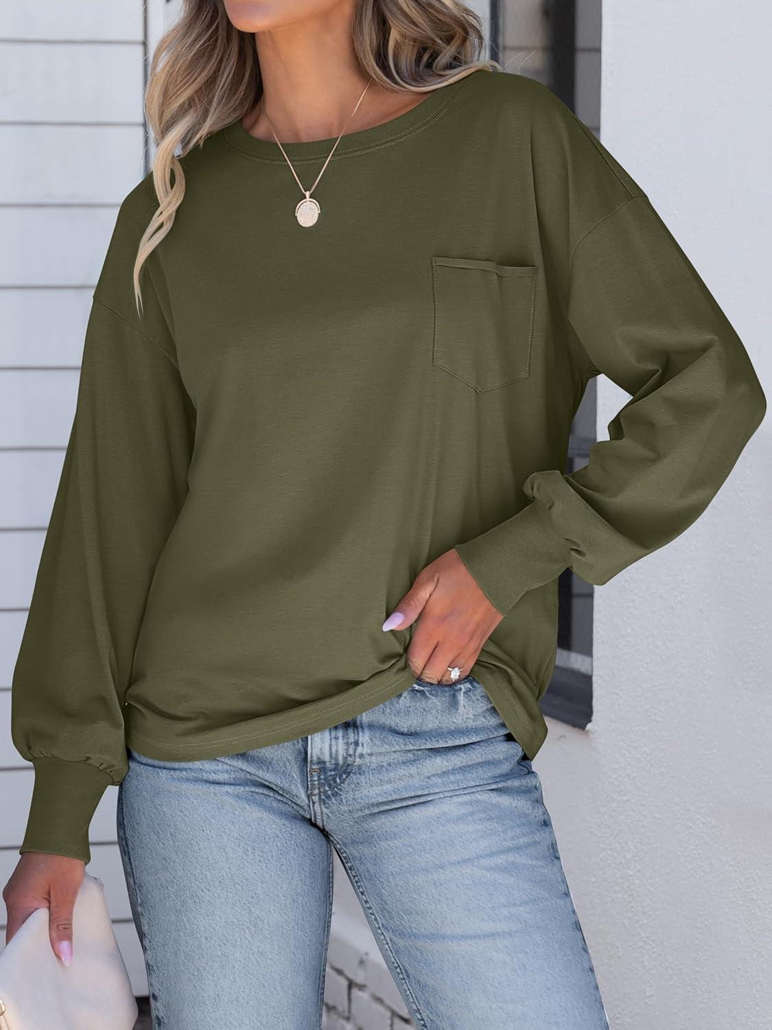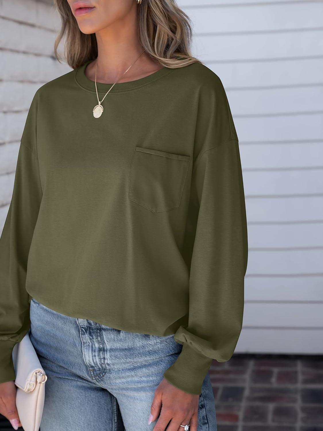 Get up to 50% off on ANRABESS Womens Long Sleeve Shirts Crewneck Oversized Tops Casual 2025 Fall Trendy T-Shirts Tee Blouse with Pockets Clothes(Army Green) styles during our spring sale event.