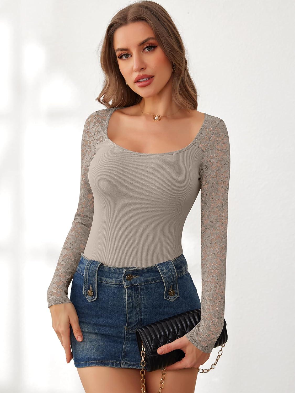 imageANRABESS Womens Long Sleeve Shirts Scoop Neck Lace Going Out Tops Slim Fit Rib Knit Casual Blouses 2025 Fall Fashion OutfitsCoffee