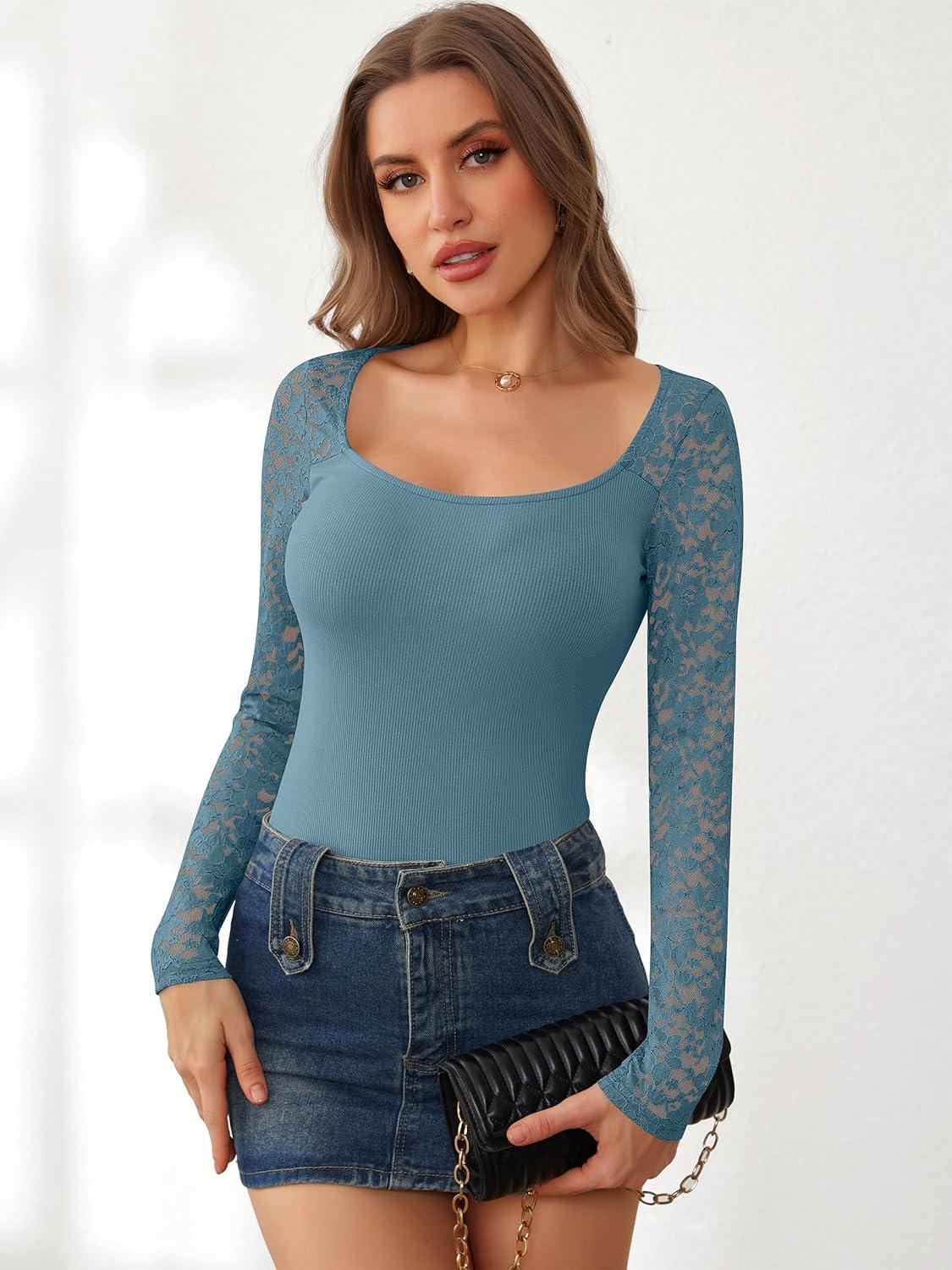 Get your hands on our exclusive ANRABESS Womens Long Sleeve Shirts Scoop Neck Lace Going Out Tops Slim Fit Rib Knit Casual Blouses 2025 Fall Fashion Outfits(Grey Blue) collection, now at a discounted price.