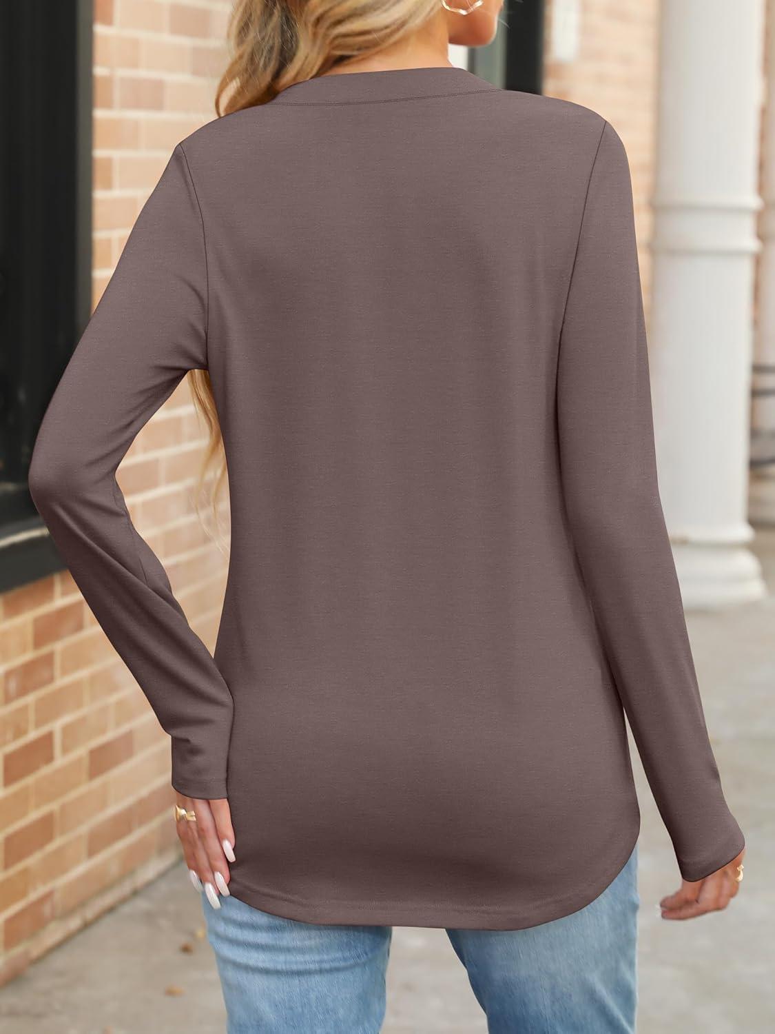 ANRABESS Womens Long Sleeve Shirts V Neck Business Casual Work Tunic Tops Basic Tees 2025 Fall Outfits(Brown)