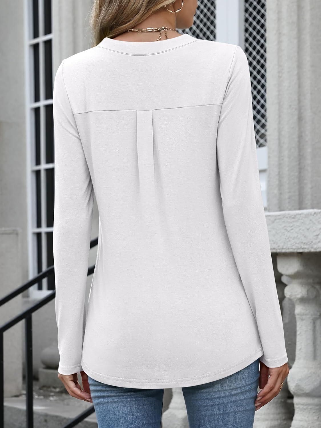 ANRABESS Womens Long Sleeve Shirts V Neck Dressy Casual Blouse Lightweight Tunic Tops 2025 Fall Outfits Trendy Clothes(White)