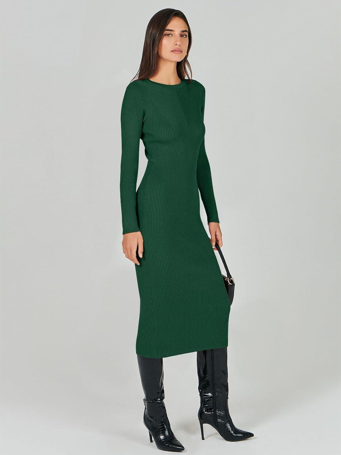 imageANRABESS Womens Long Sleeve Sweater Dress 2025 Fall Crewneck Bodycon Stretch Ribbed Knit Slim Fit Midi Dresses Trendy OutfitsGreen
