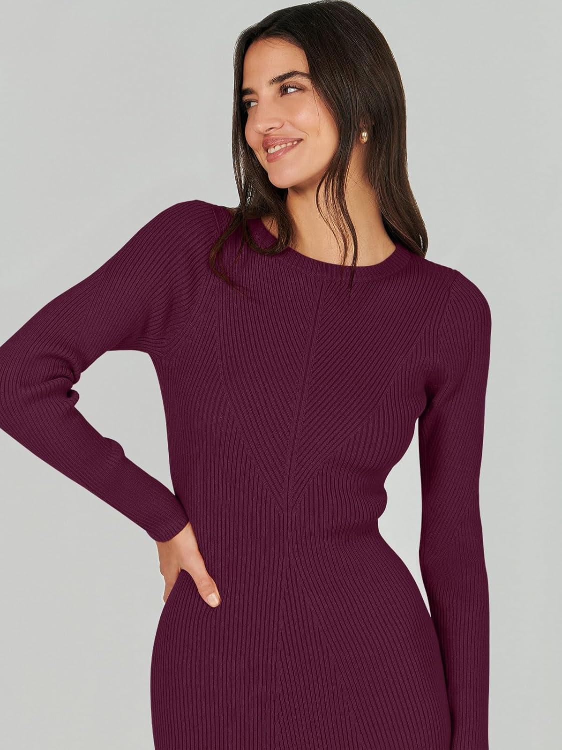 imageANRABESS Womens Long Sleeve Sweater Dress 2025 Fall Crewneck Bodycon Stretch Ribbed Knit Slim Fit Midi Dresses Trendy OutfitsWine Red