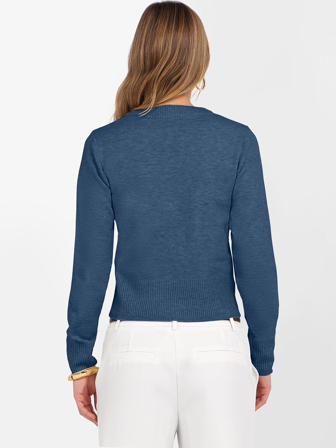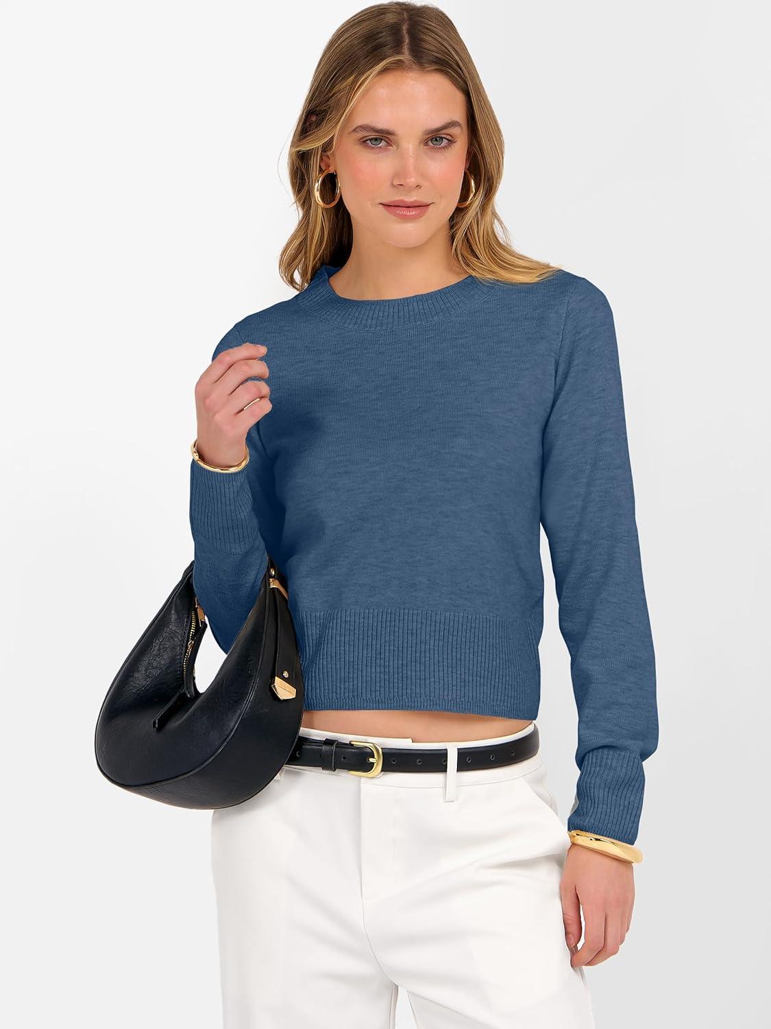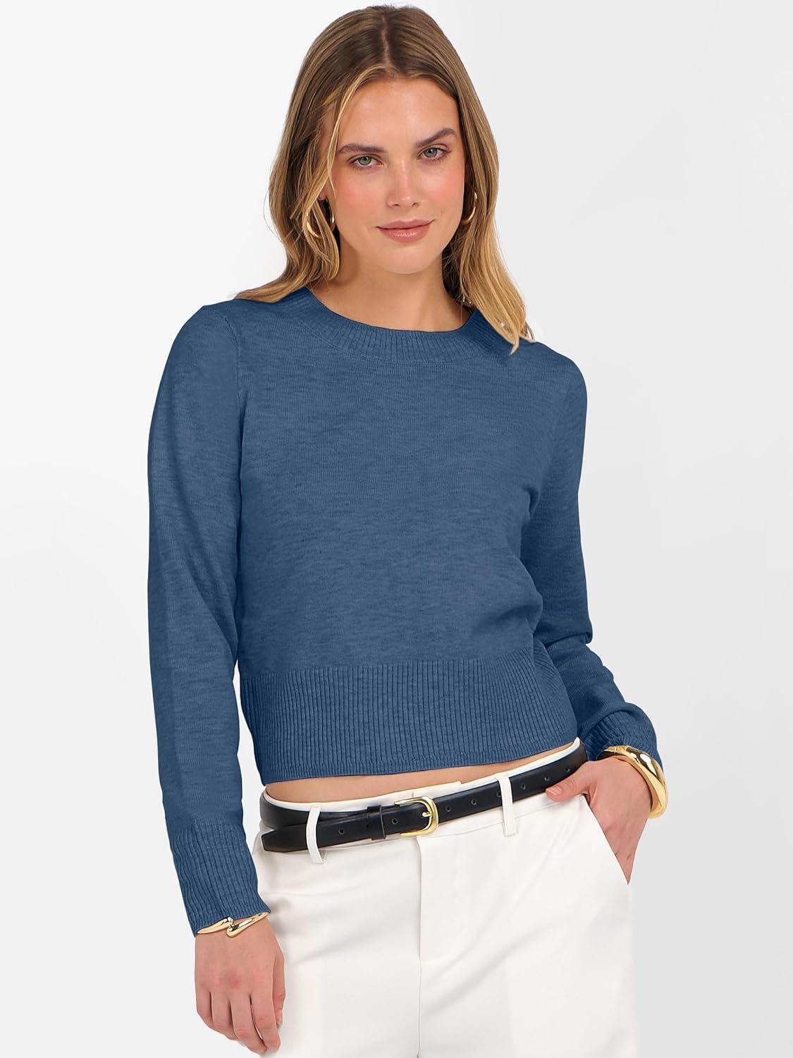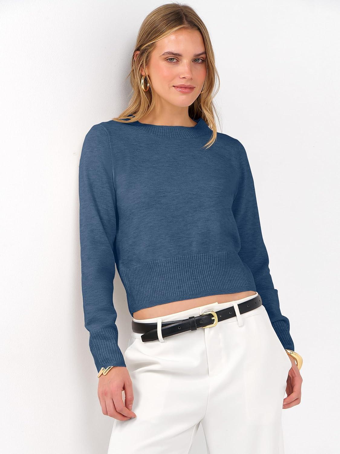 imageANRABESS Womens Long Sleeve Sweaters Cropped Crew Neck Business Casual Light Weight Sweater Tops Fall Fashion Clothes 2025Deep Blue