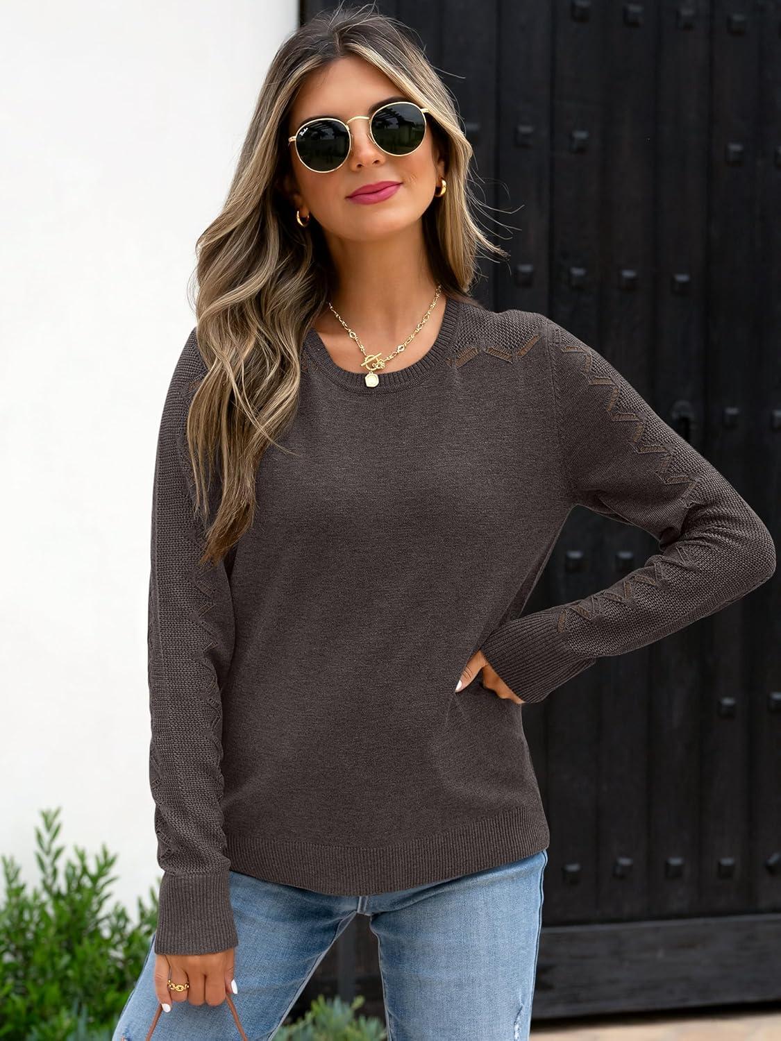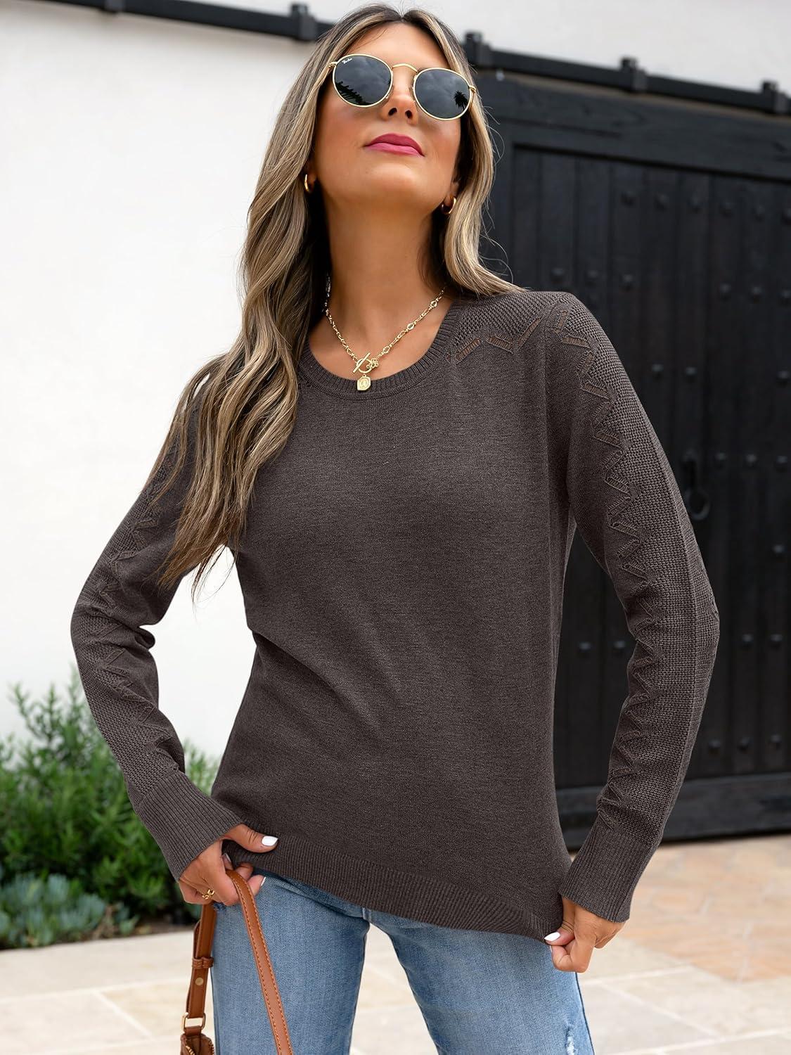 Womens sweaters long sleeve hollow out pullover loose fit business casual work tops 2025 fall trendy outfits Material- 6% Wool 20% Nylon 35% Acrylic, 39%Polyester. Medium stretch, medium thickness, soft, lightweight and breathable. Washing – Recommended to machine wash at 30℃ in a laundry bag. Wash the same colors together. Do not bleach. Lay flat to dry. Ironing temperature should not exceed 110℃. Women's sweater, long sleeve, crew neck, crochet hallow out, knit, wool blend, rib cuffs and hem. With comfortable and warm material, this cute sweater is easily paired with jeans, leggings, coats, jackets or boots. From casual to dressy, the versatile fall sweater is a must-have for any fashion-forward individual. Our trendy holey sleeve sweater is perfect for daily wear, work, office, business casual,going out,dating, shopping, travel, vacation. Also can keep you warm and cozy at home, lounging fashion and elegant.