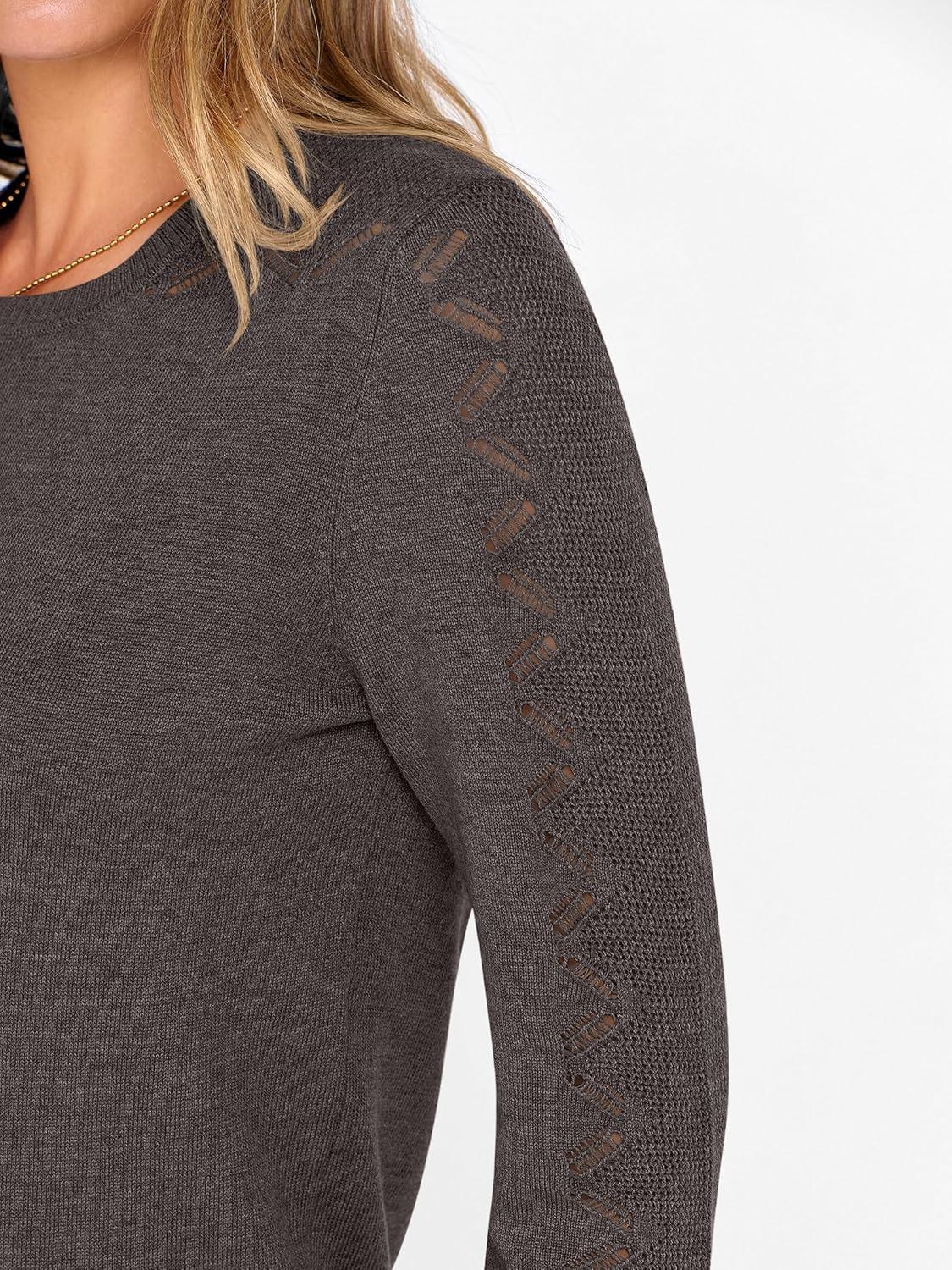 ANRABESS Womens Long Sleeve Sweaters Wool Blend Crew Neck Hollow Out Business Casual Work Tops 2025 Fall Outfits(Dark Taupe)
