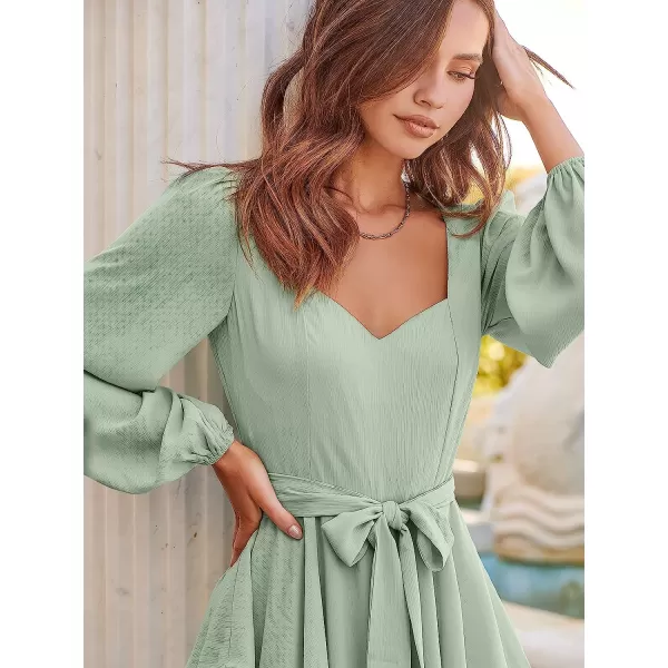 ANRABESS Women's Long Sleeve Sweetheart Neck Waist Tie Doulbe Layer Ruffle Mini Dress Flowy Tiered Short Dress(Light Green)