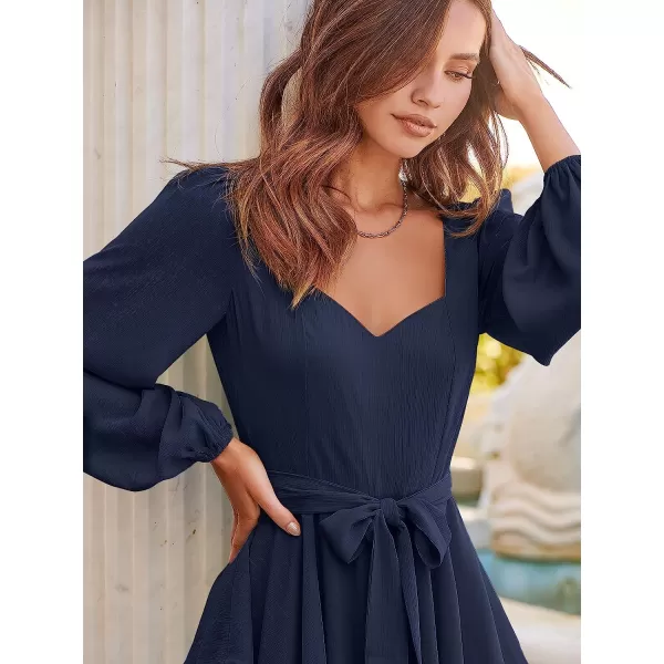 ANRABESS Women’s Long Sleeve Sweetheart Neck Waist Tie Doulbe Layer Ruffle Mini Dress Flowy Tiered Short Dress(Navy Blue)