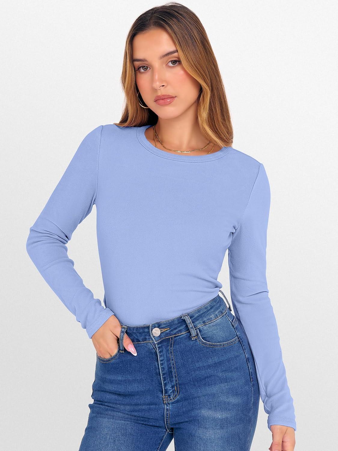 ANRABESS Womens Long Sleeve Thermal Shirts Slim Fit Basic Tee Tops Warm Fleece Undershirts 2025 Fall Winter Layer Outfits(Blue)