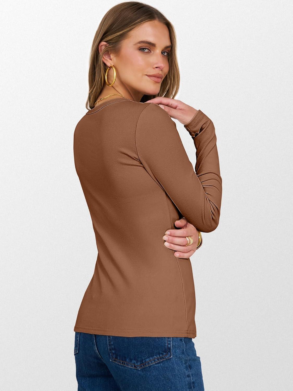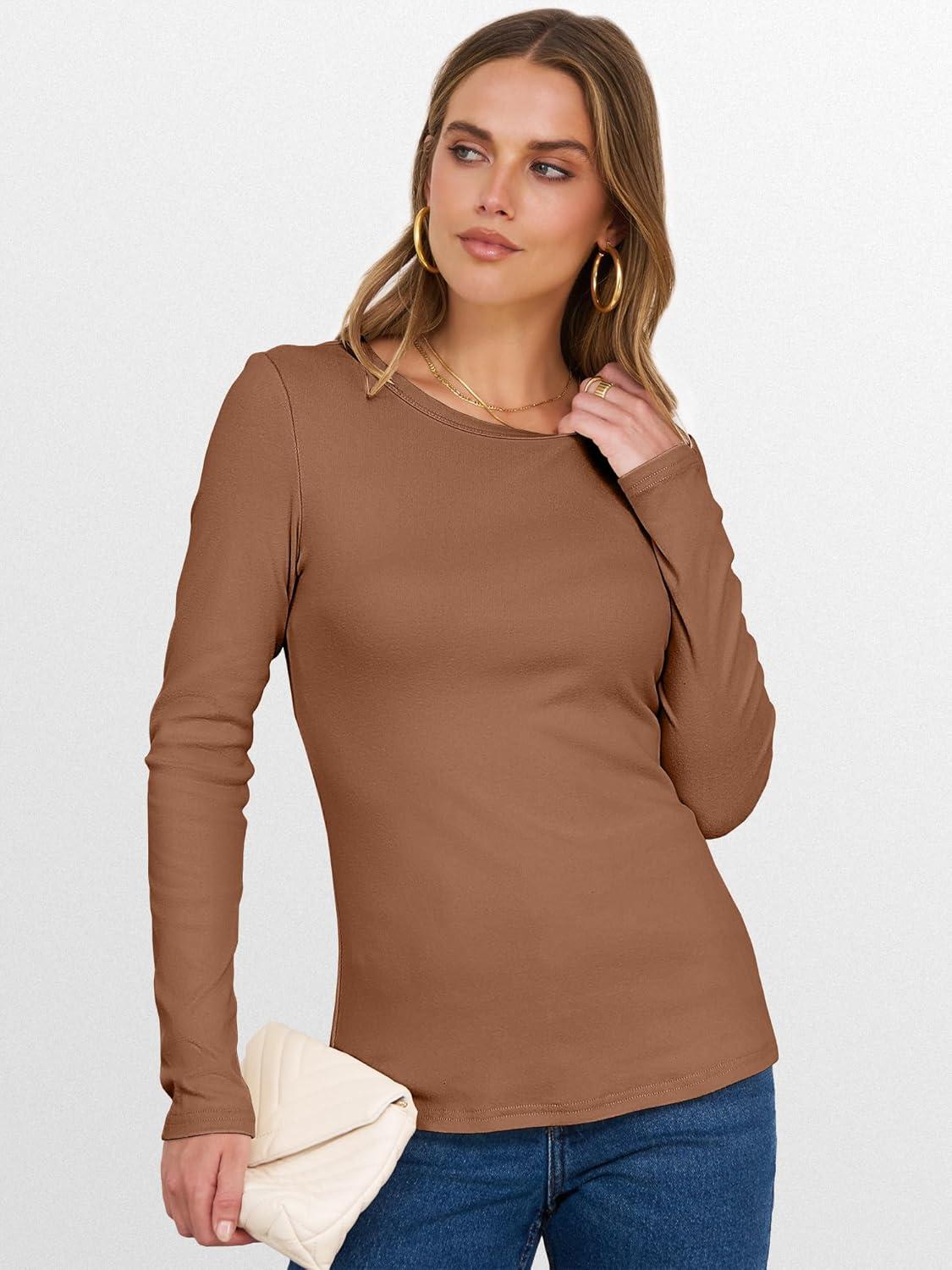 imageANRABESS Womens Long Sleeve Thermal Shirts Slim Fit Basic Tee Tops Warm Fleece Undershirts 2025 Fall Winter Layer OutfitsCaramel