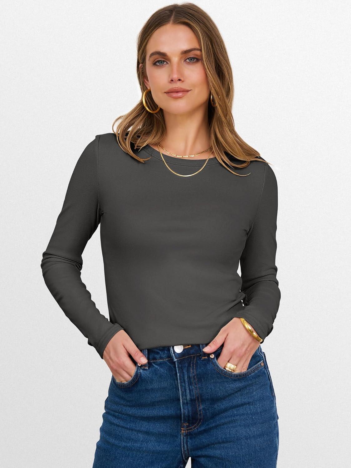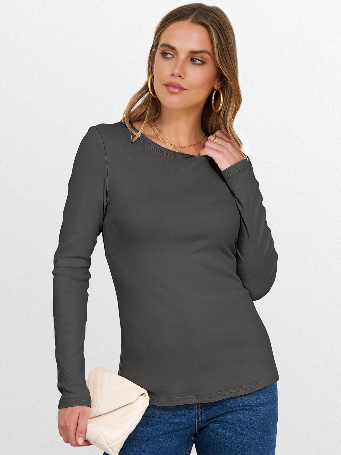 ANRABESS Womens Long Sleeve Thermal Shirts Slim Fit Basic Tee Tops Warm Fleece Undershirts 2025 Fall Winter Layer Outfits(Dark Grey)