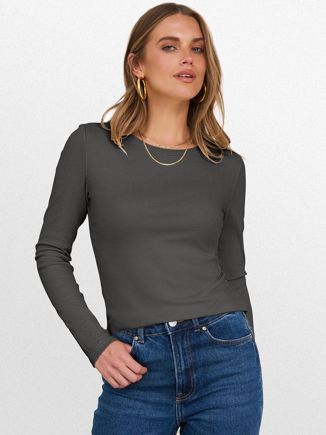 imageANRABESS Womens Long Sleeve Thermal Shirts Slim Fit Basic Tee Tops Warm Fleece Undershirts 2025 Fall Winter Layer OutfitsDark Grey