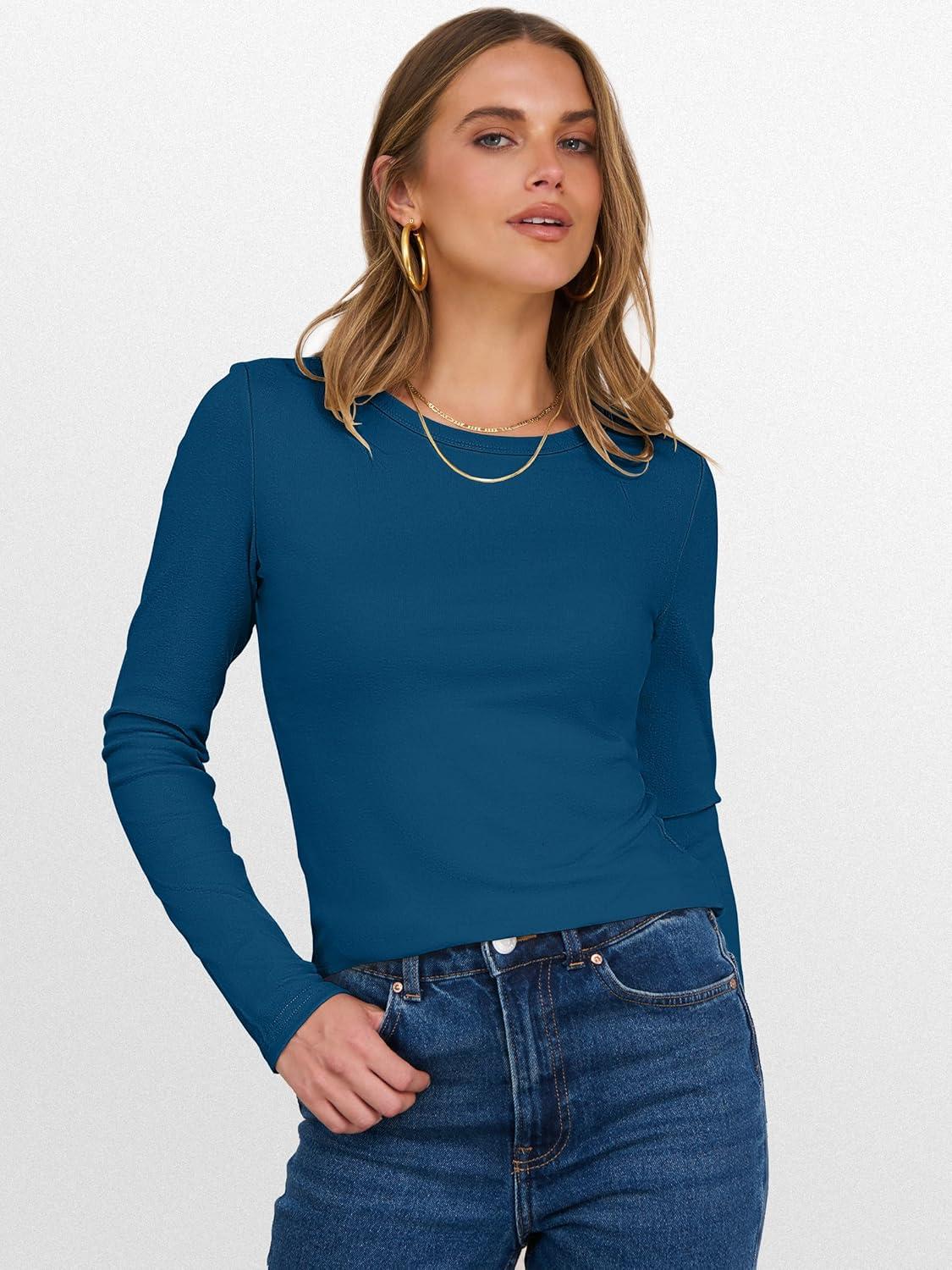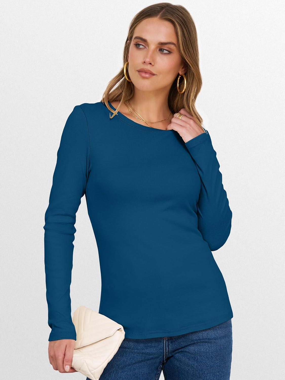imageANRABESS Womens Long Sleeve Thermal Shirts Slim Fit Basic Tee Tops Warm Fleece Undershirts 2025 Fall Winter Layer OutfitsDeep Lake Blue