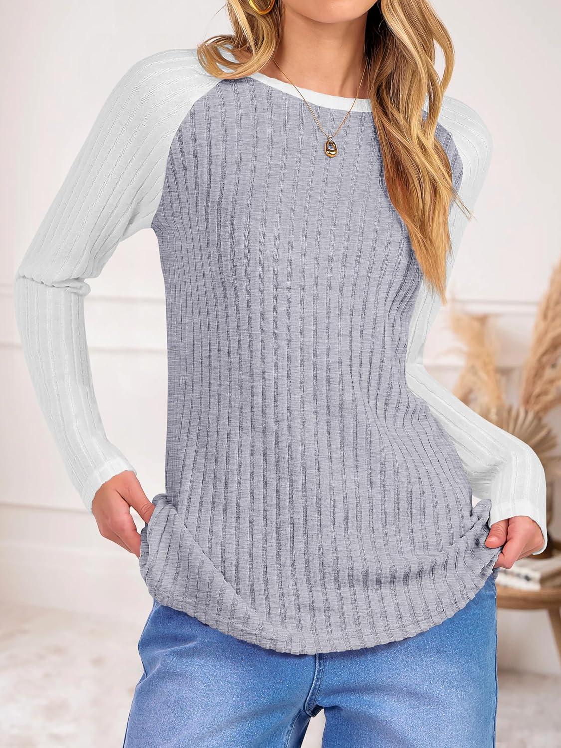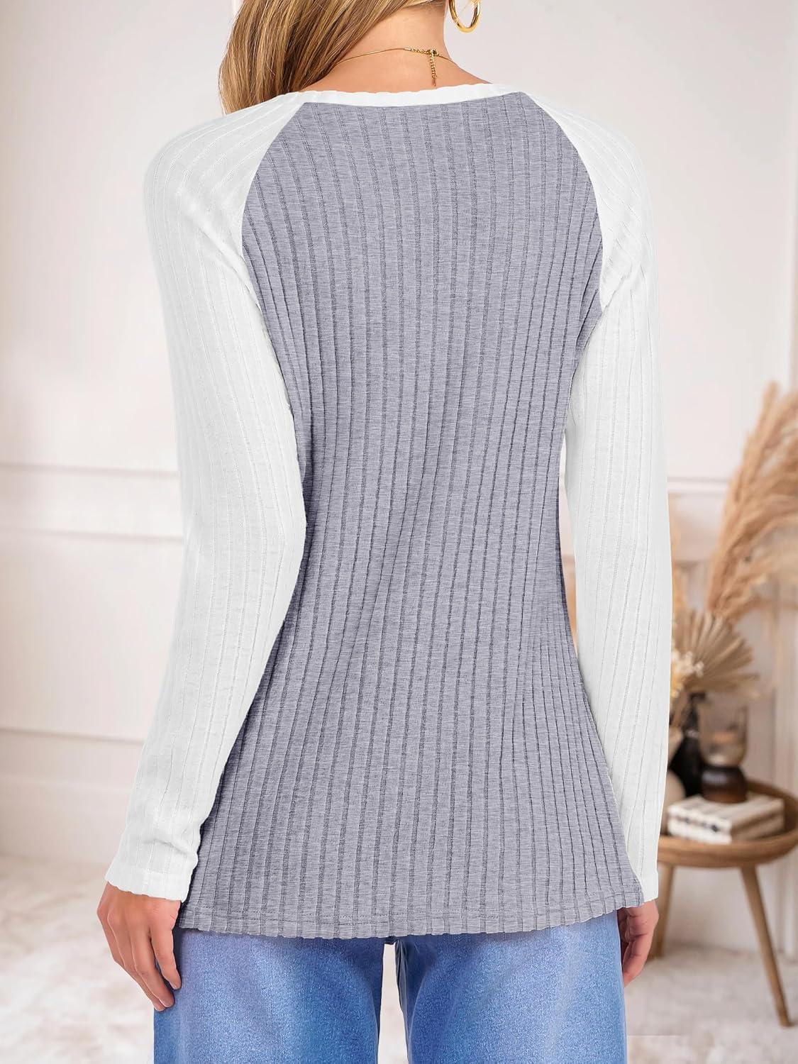 ANRABESS Womens Long Sleeve Tops Ribbed Knit Color Block Shirts Lightweight Sweaters 2025 Fall Outfits Blouses(Grey Black)