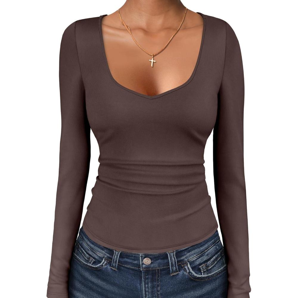 Be the first to review “ANRABESS Womens Long Sleeve Tops Sweetheart Neck Ribbed Knit Slim Fitted Shirts Basic Layer Tees 2025 Fall Outfits(Coffee)”